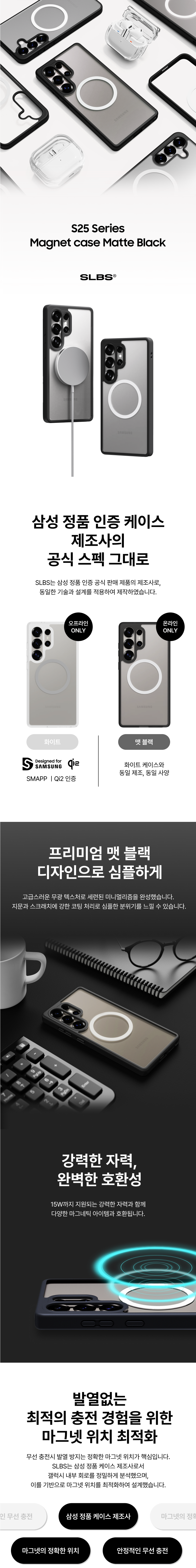 에스엘비에스 클리어 마그넷 케이스 맷 블랙 갤럭시 S25 시리즈