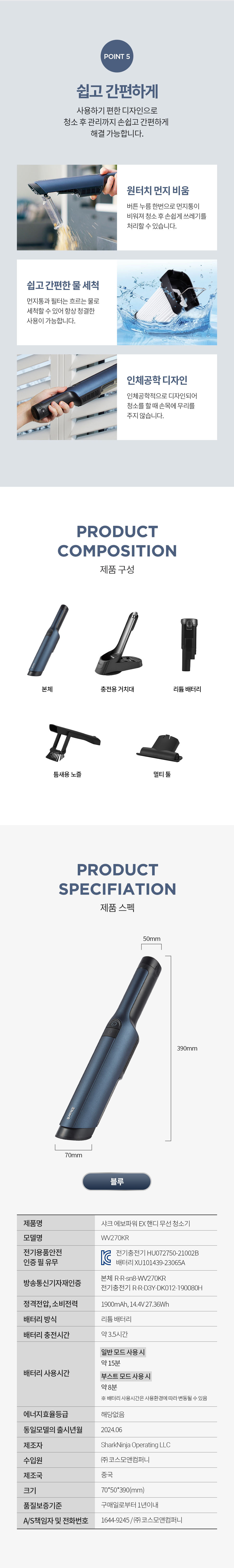 샤크닌자 샤크 에보파워 EX 핸디 무선청소기 WV270KR