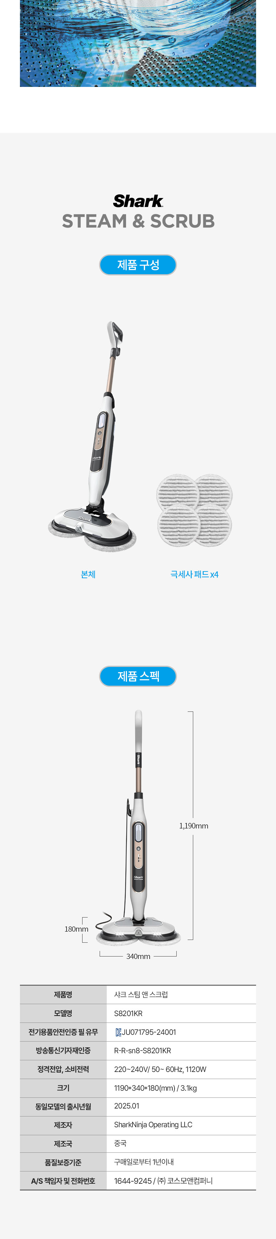 샤크닌자 샤크 스팀 앤 스크럽 청소기 S8201KR