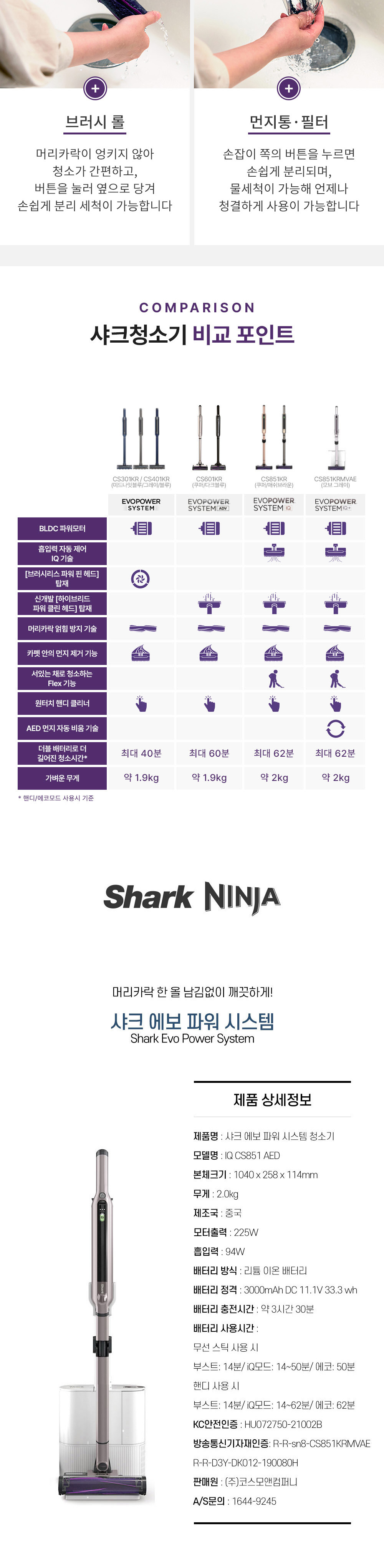 샤크 에보파워 시스템 IQ+ 무선청소기 CS851AED (핸디청소기 분리/ 자동먼지비움)