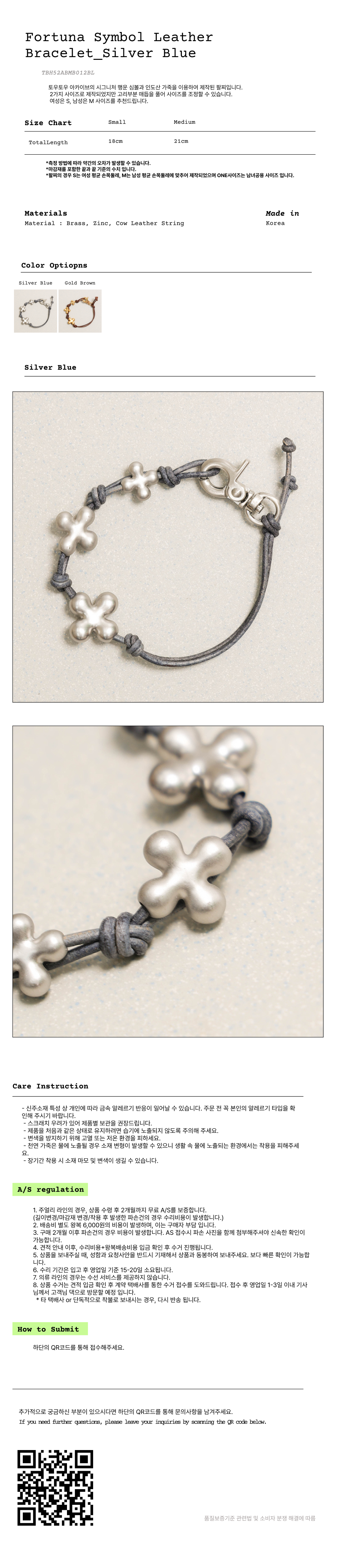 토우토우아카이브 포르투나 심볼 레더 팔찌 실버 블루