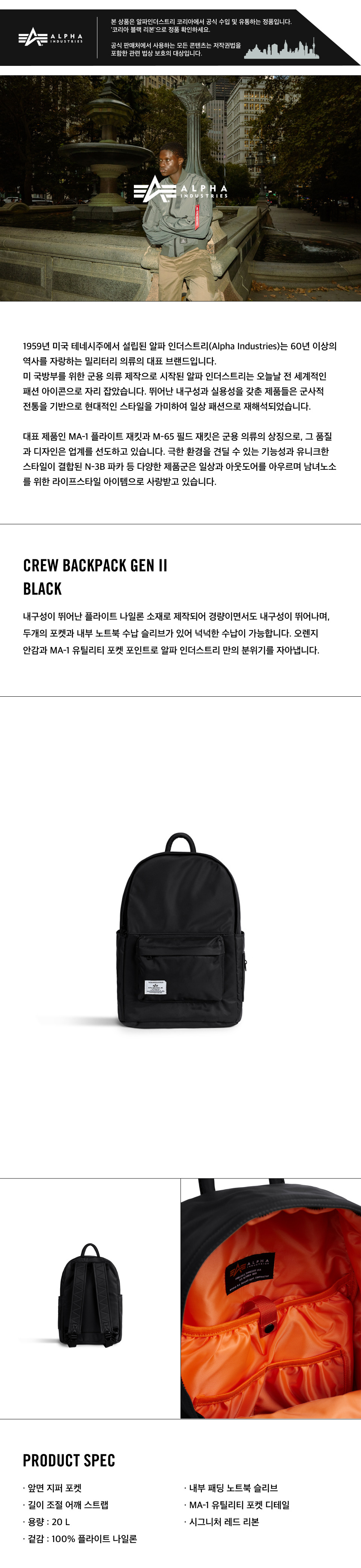 알파 인더스트리 크루 백팩 젠 II 블랙