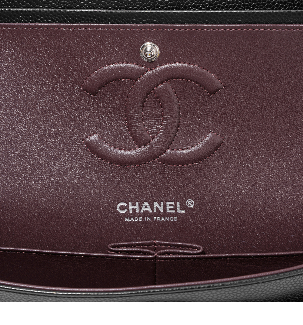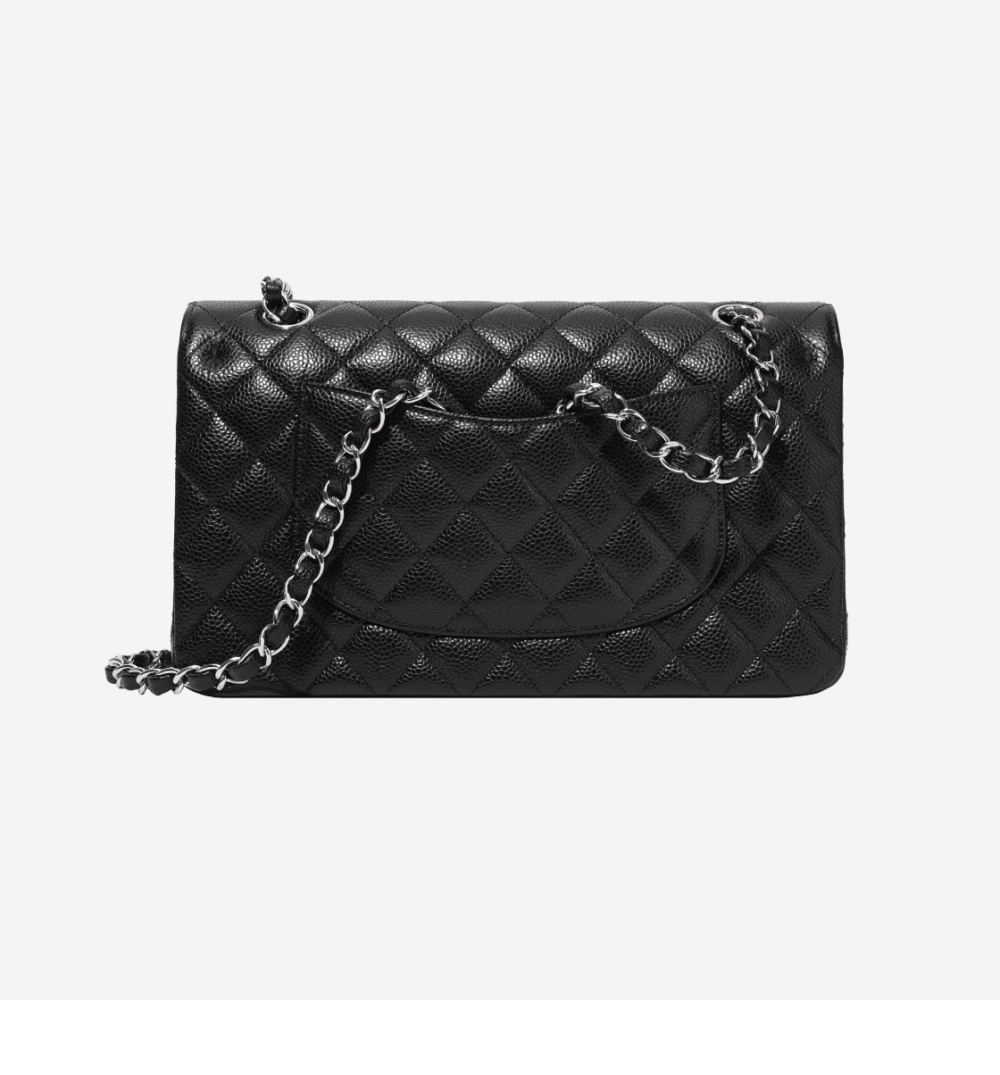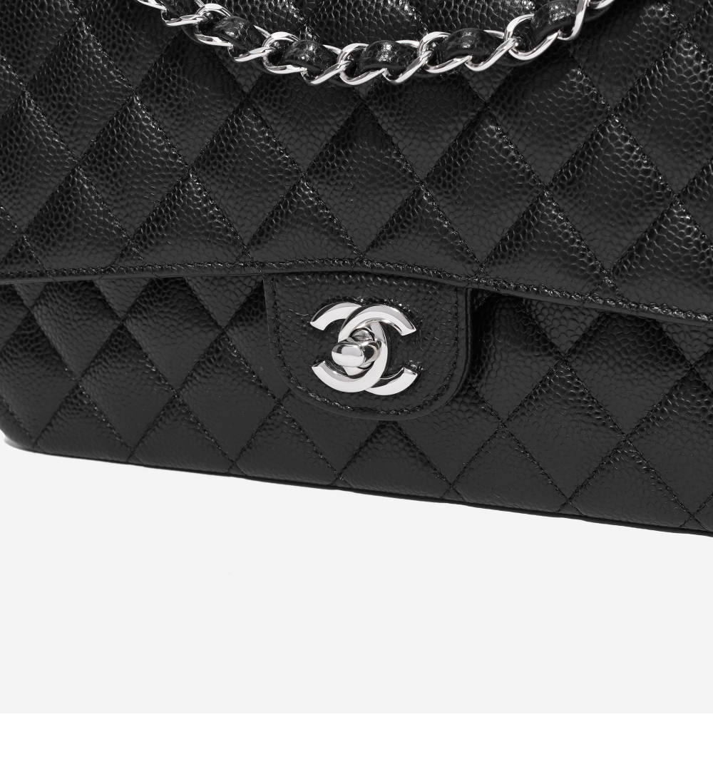 샤넬 클래식 미디움 플랩백 그레인드 카프스킨 & 실버 메탈 블랙