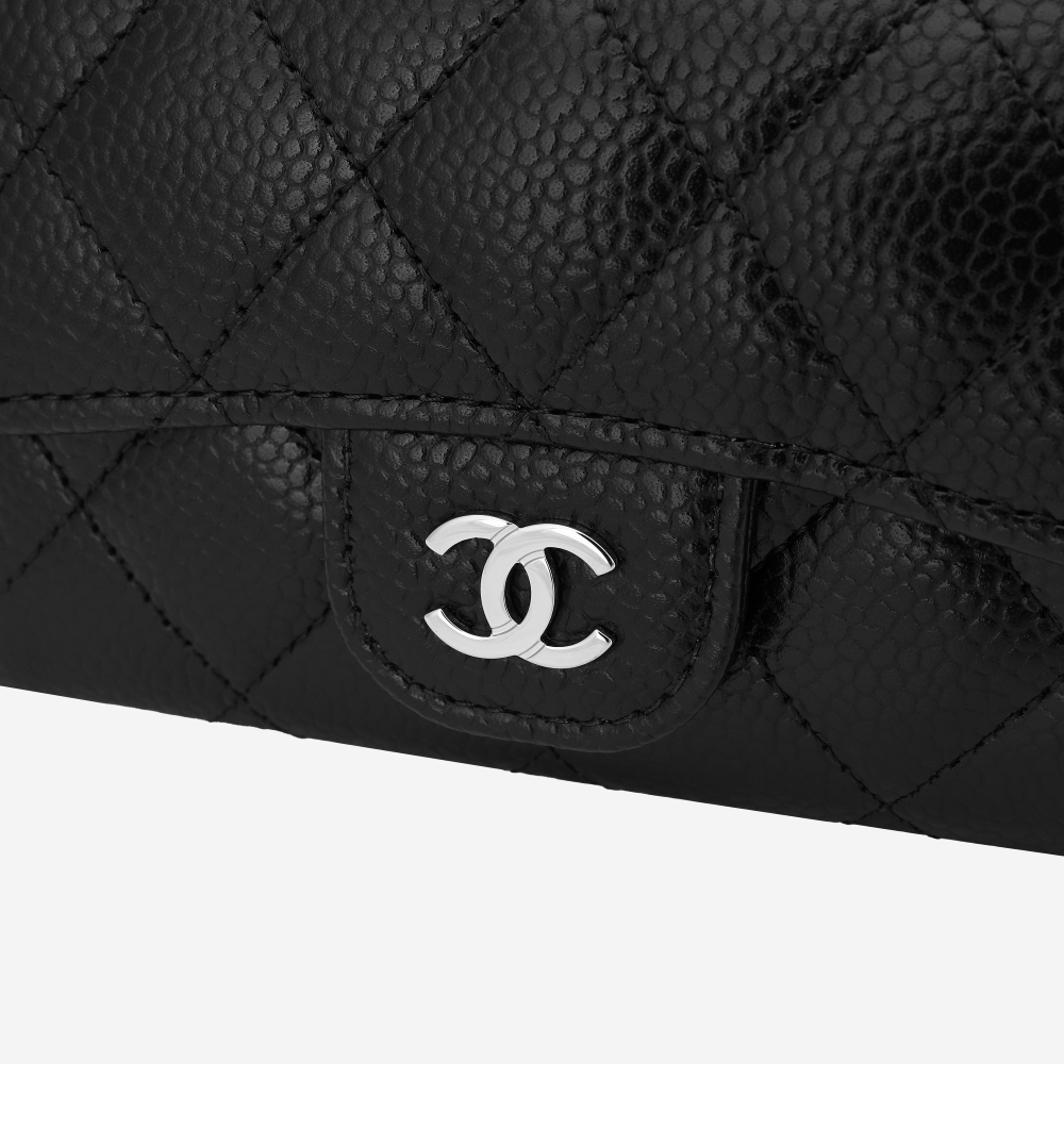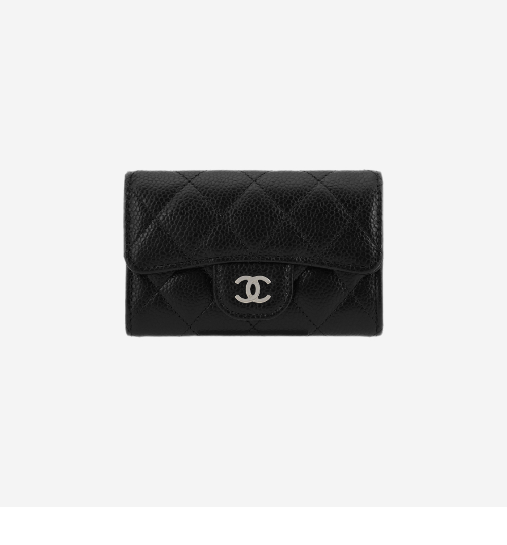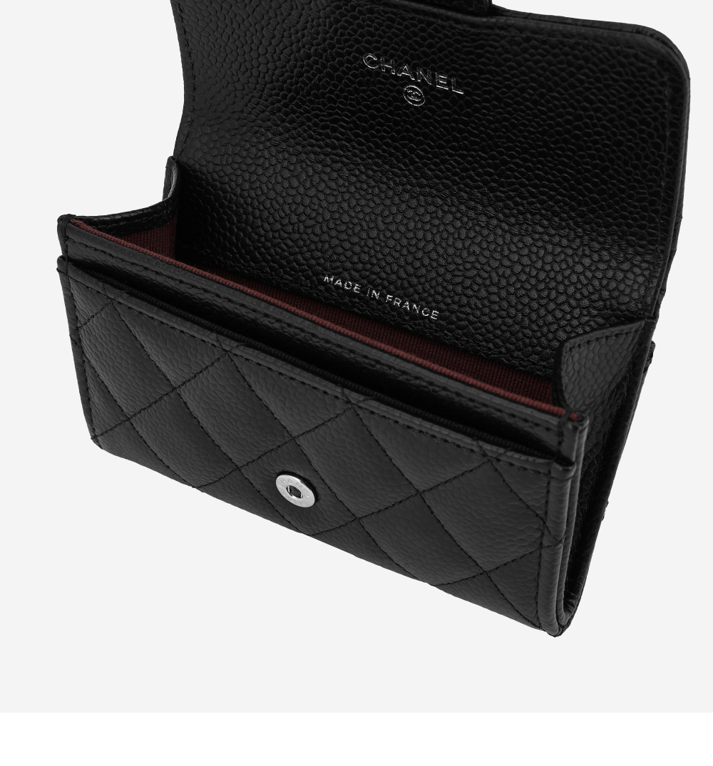 샤넬 클래식 카드 홀더 그레인드 카프스킨 & 실버 메탈 블랙