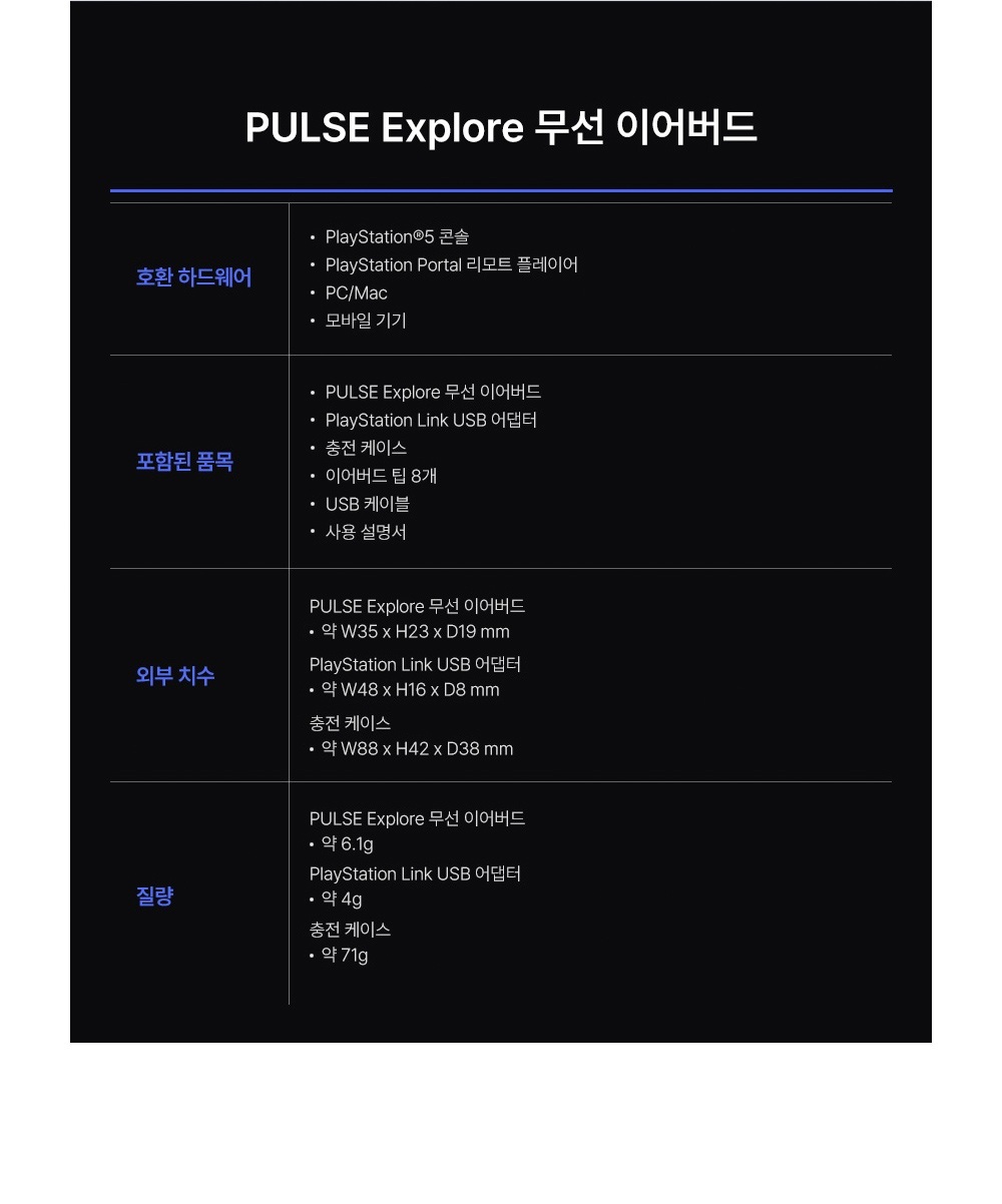 플레이스테이션 5 펄스 익스플로어 무선 이어버드 미드나이트 블랙