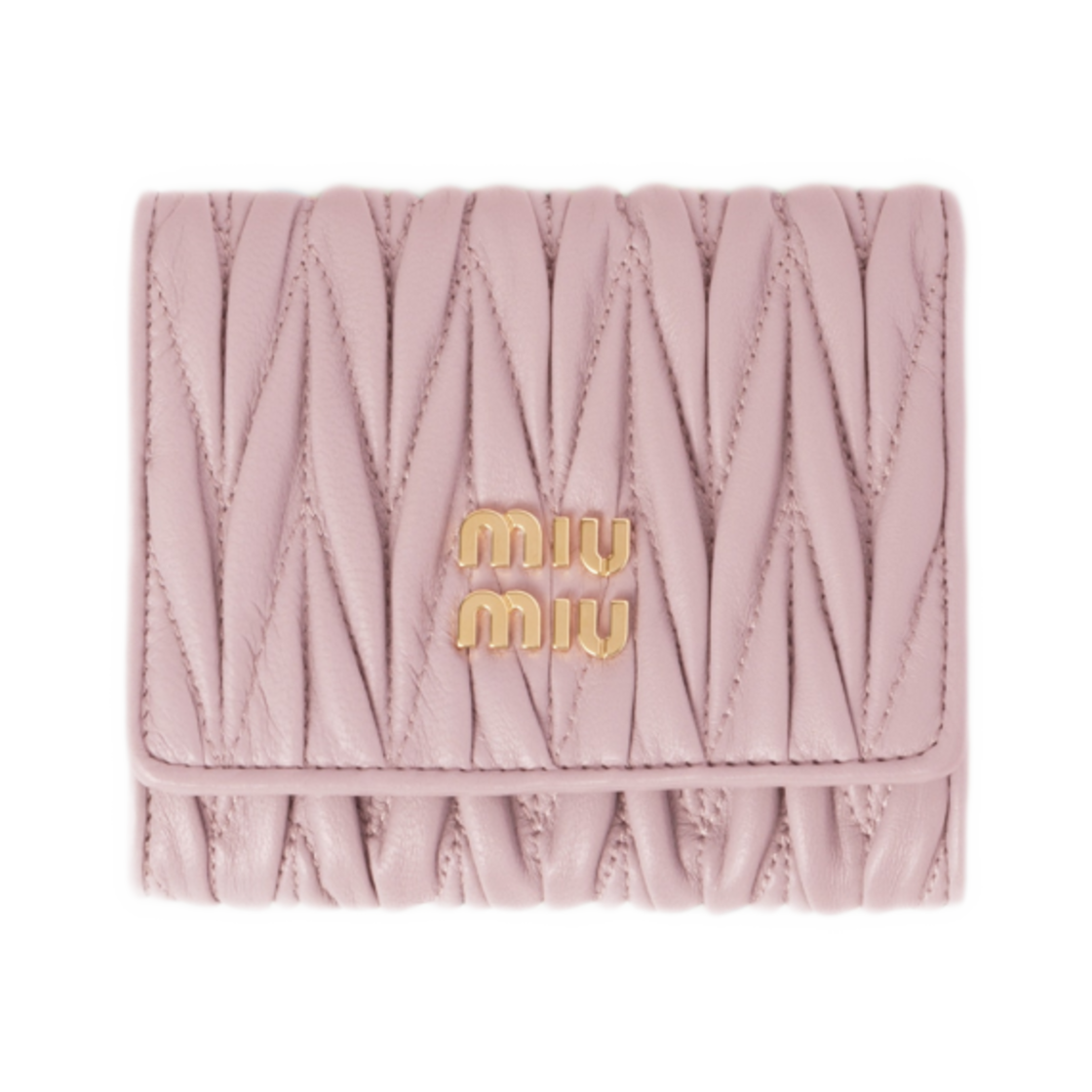 Miu Miu Small Matelasse Nappa Leather Wallet Alabaster Pink