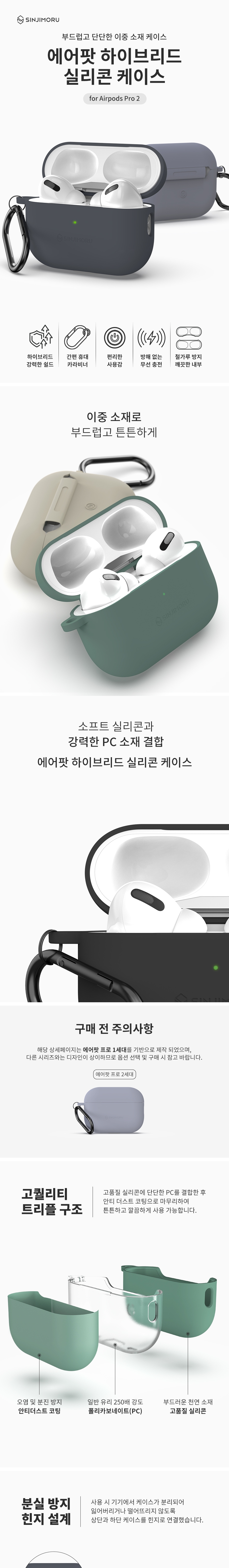 신지모루 하이브리드 실리콘 에어팟 프로 2세대 무선 충전 가능 케이스 웜그레이 (키링 포함)