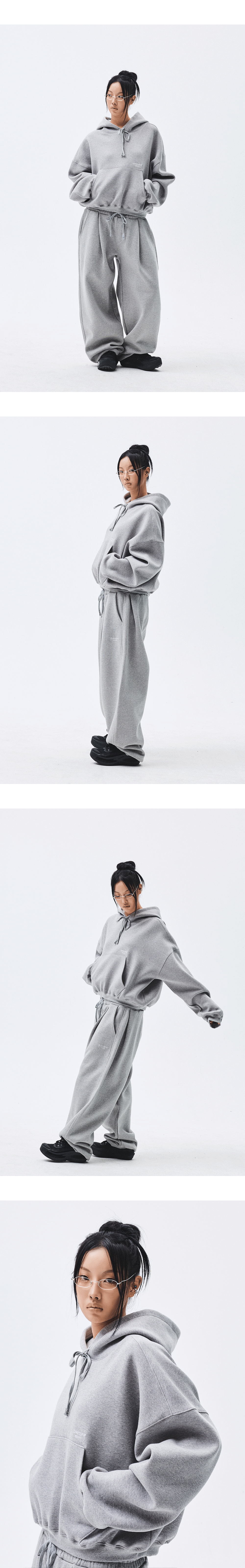 언더마이카 무.97 안티 Fxxking 로고 플레이 오버사이즈 본디드 스웻 셋업 (후드티, 조거팬츠) - 라이트멜란지