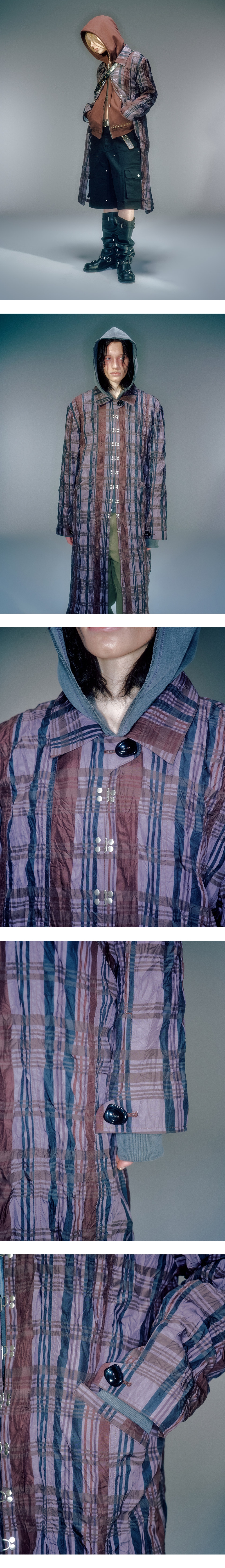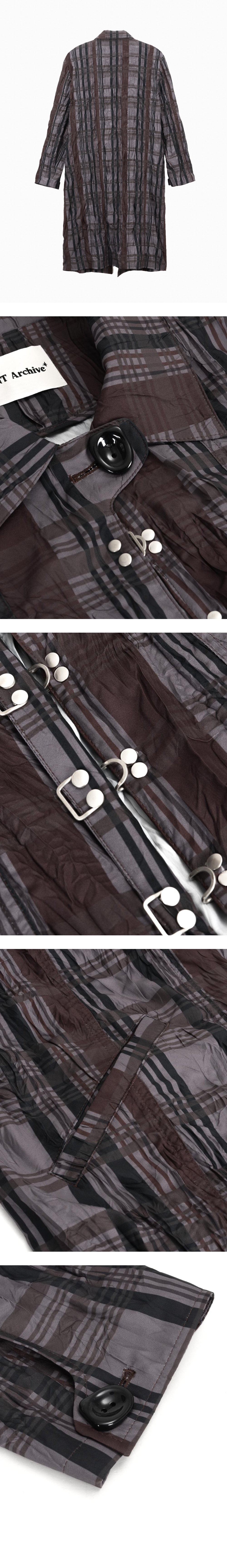 베이컨트 아카이브 하디드 체크 링클 훅 코트 브라운