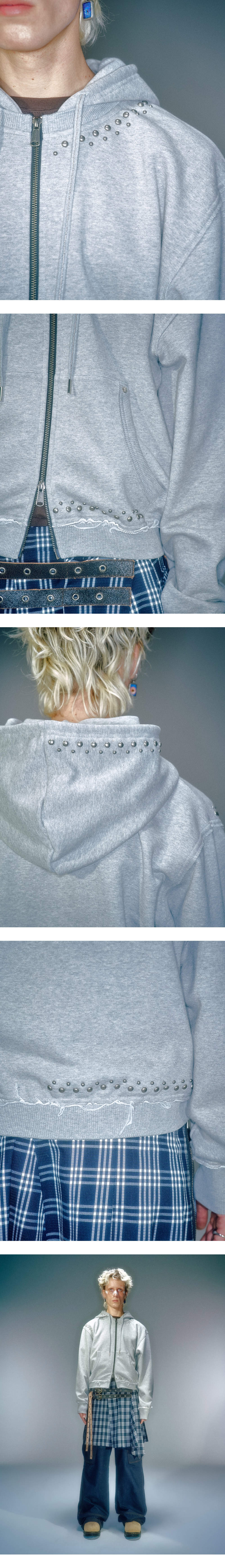 Vacant Archive Noah Stud Hood Zip-Up Grey