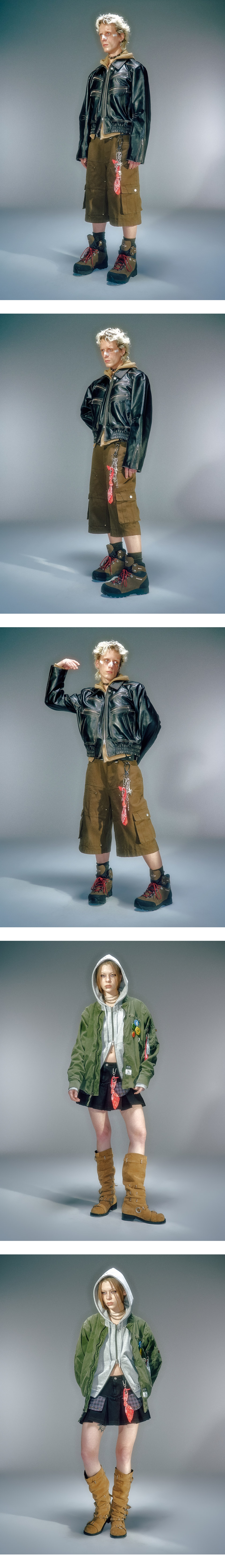 테크니컬적인 워싱 기법 사용하여 빈티지한 무드 연출 컴팩트한 사이즈로 다양한 룩킹으로 연출 가능 아일렛 디테일 사용으로 고리 이용해 연출 가능 * 개체마다 워싱으로 컬러 차이가 있습니다.