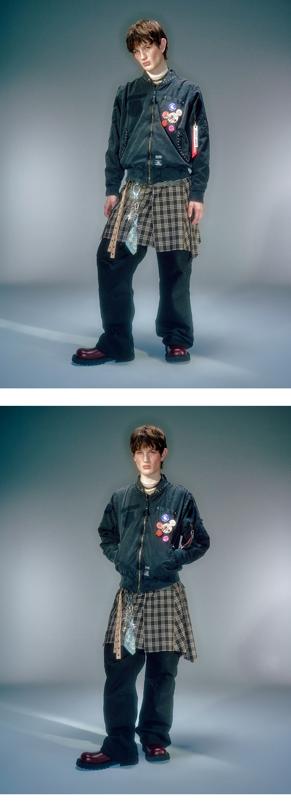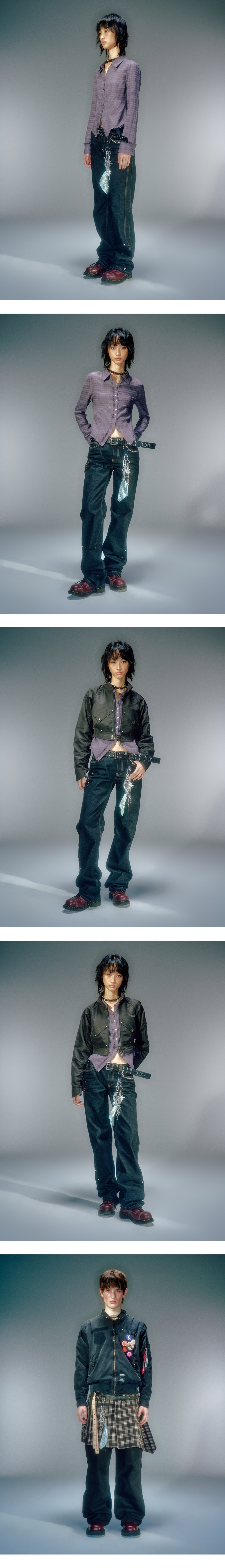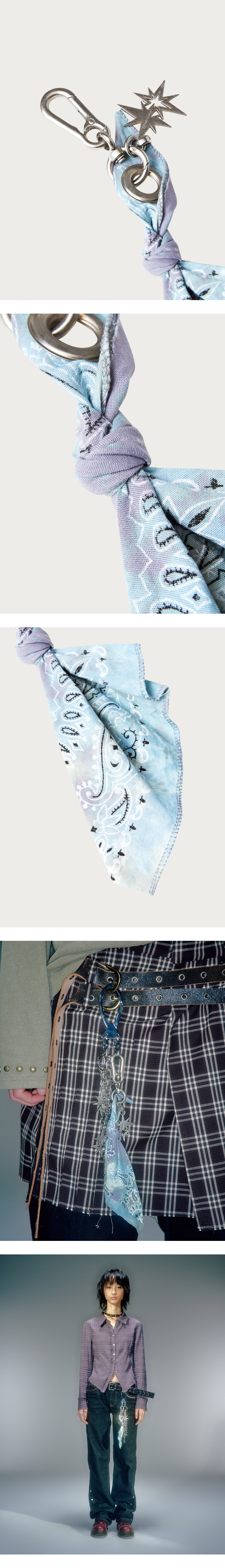 테크니컬적인 워싱 기법 사용하여 빈티지한 무드 연출 컴팩트한 사이즈로 다양한 룩킹으로 연출 가능 아일렛 디테일 사용으로 고리 이용해 연출 가능 * 개체마다 워싱으로 컬러 차이가 있습니다.