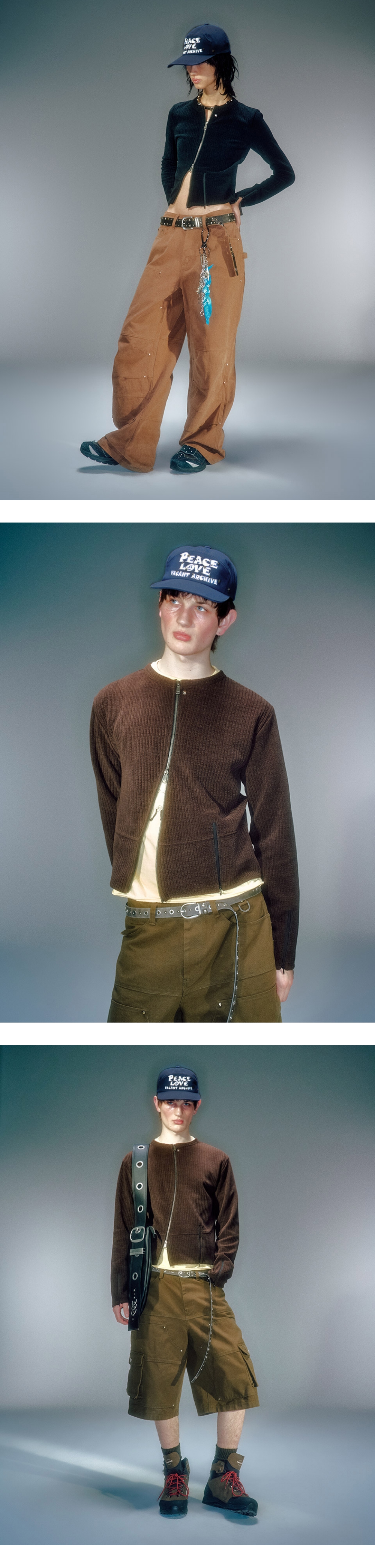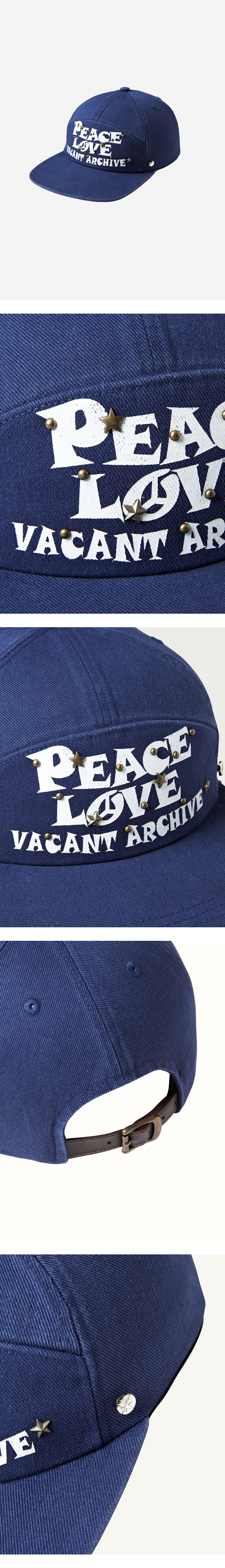 전면 로고 아트워크 나염 디테일 3종류 스터드 사용 자체 개발한 와이드한 챙과 깊이감있고 여유있는 핏감 리얼 레더끈 사용 워싱가공으로 빈티지한 무드 연출