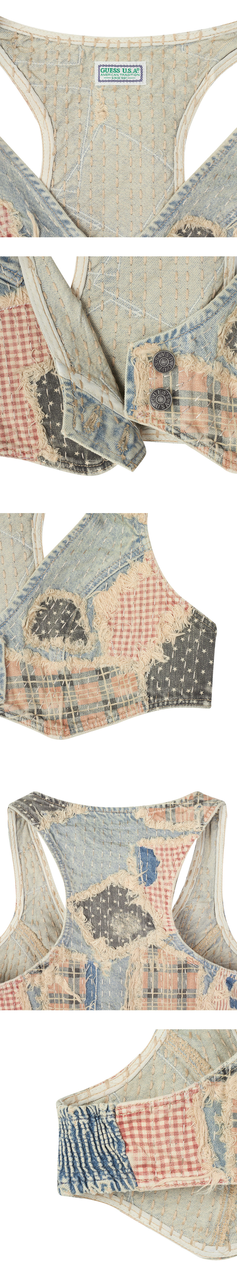 80년대 미국 서부의 자유로운 무드가 느껴지는 Guess USA의 Women Vintage Denim Top Light Wash입니다. -유니크한 패치워크 디자인 -레귤러 핏 -distressed detail -전면 버튼 2개