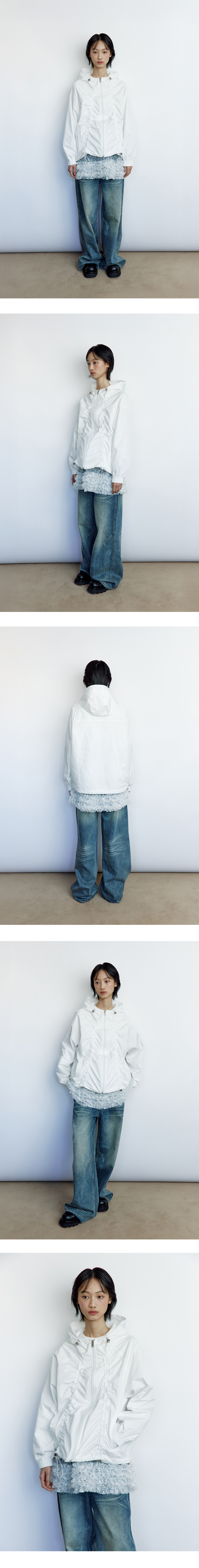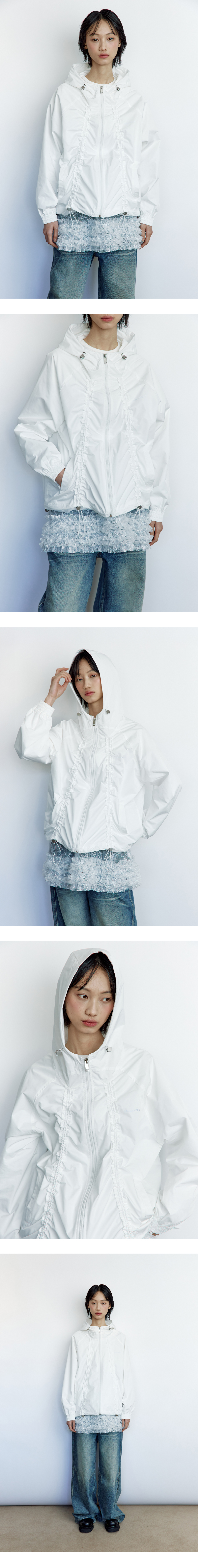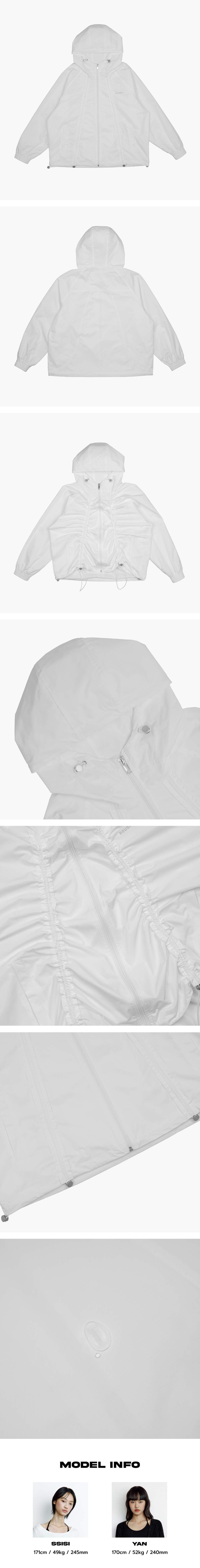 앞부분의 고무줄을 조절하여 원하는 만큼 셔링을 만들어 다양한 스타일로 연출할 수 있는 아이템입니다. 생활 방수 기능이 있어 가벼운 비나 바람으로부터 보호해 주며, 가볍고 넉넉한 핏으로 편안한 착용감을 제공합니다. 스타일과 기능성을 모두 갖춘 디자인으로 일상은 물론 간절기시 야외 활동에도 활용하기 좋은 아우터입니다. - Polyester 100% - Model Info : YAN (170cm / 52kg) / SSISI (171cm / 49kg) - Fitting size : S