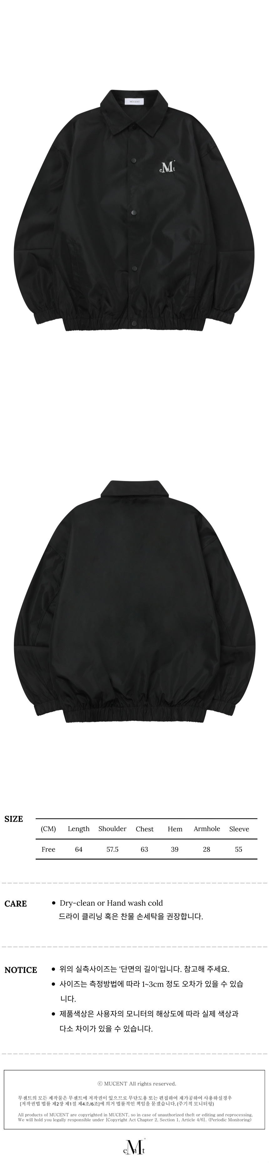┃Detail • 전면부 무센트 시그니처 로고 자수 • 은은한 광택감이 돋보이는 소재 • 버튼 오픈 클로징의 여밈 방식 • 소매, 밑단 탄탄한 시보리로 높은 퀄리티 • 넉넉한 크기의 사이드 포켓 • 간절기에 가볍게 걸치기 좋은 두께와 가벼운 무게감 • 심플한 디자인으로 활용도 높은 데일리 아이템 ┃Material : Polyester 100% ┃Care : Dry cleaning - 무센트는 말기의 행성인 이 지구에서 지속 가능한 옷들을 고민합니다. 우리는 신념을 소비하는 미닝아웃을 지지합니다.