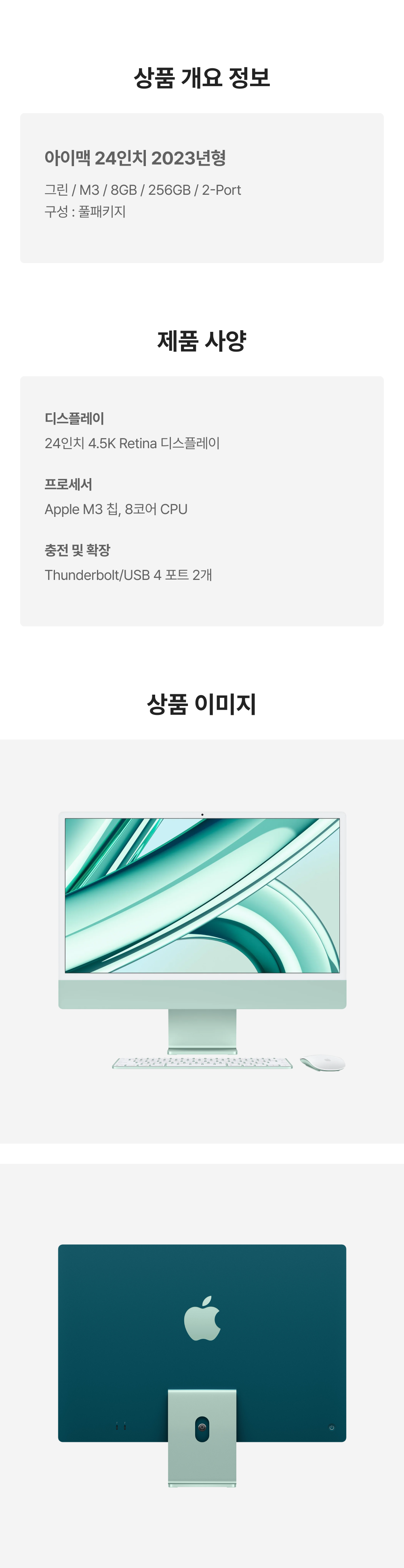 [A등급] Refurbished 2023 iMac 24 M3 256GB SSD / 8GB RAM / 2-Port Green