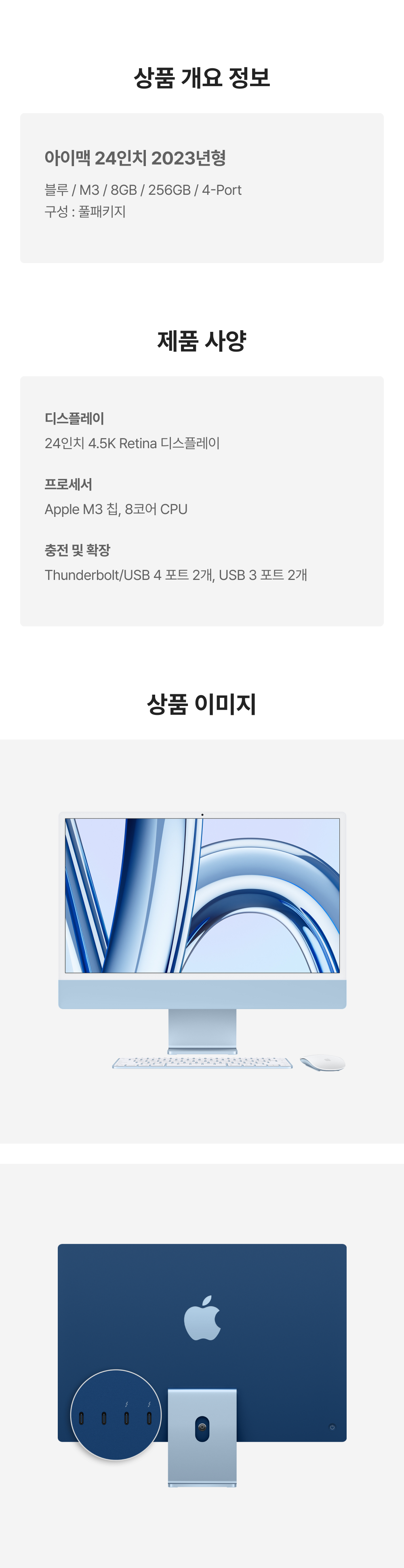 [A등급] 리퍼비시 2023 아이맥 24 M3 256기가 SSD 8기가 램 4포트 블루