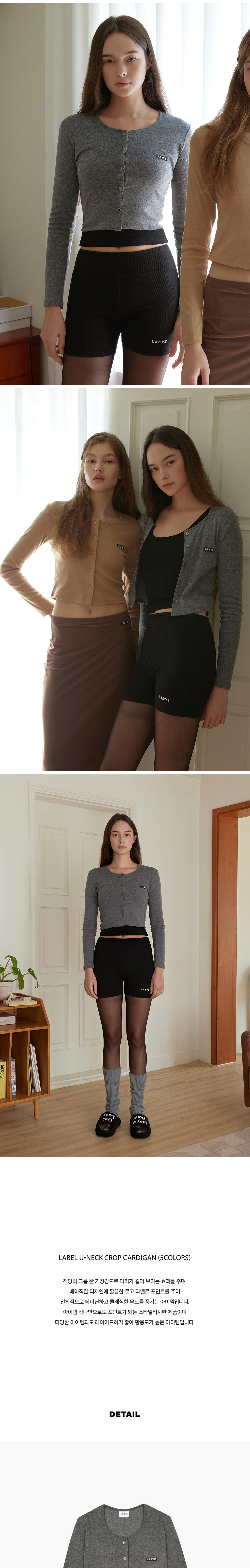 레이지지 라벨 유넥 크롭 가디건 그레이