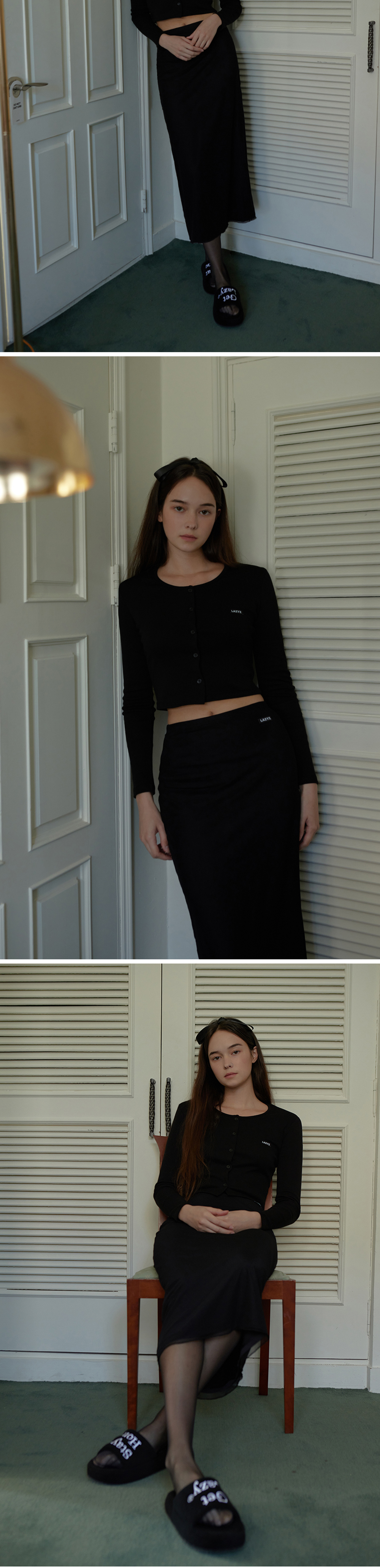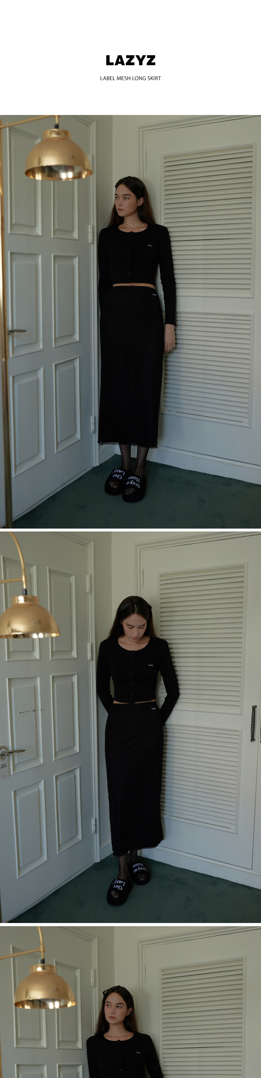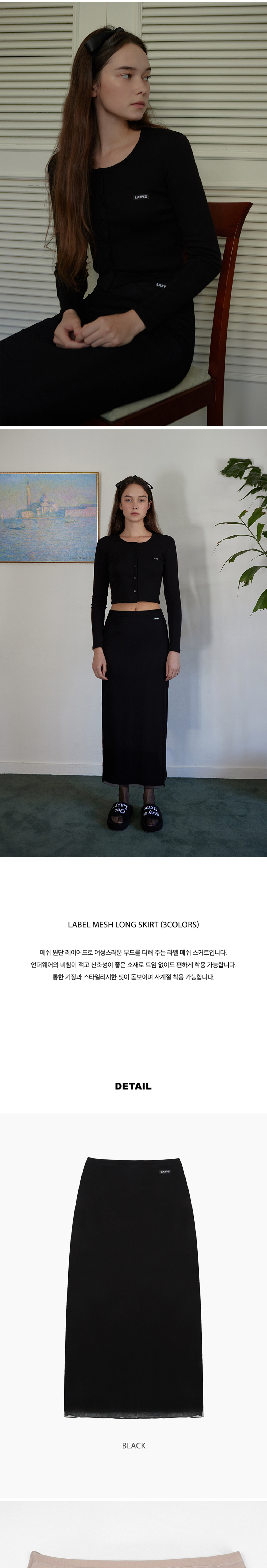 레이지지 라벨 메쉬 롱 스커트 블랙