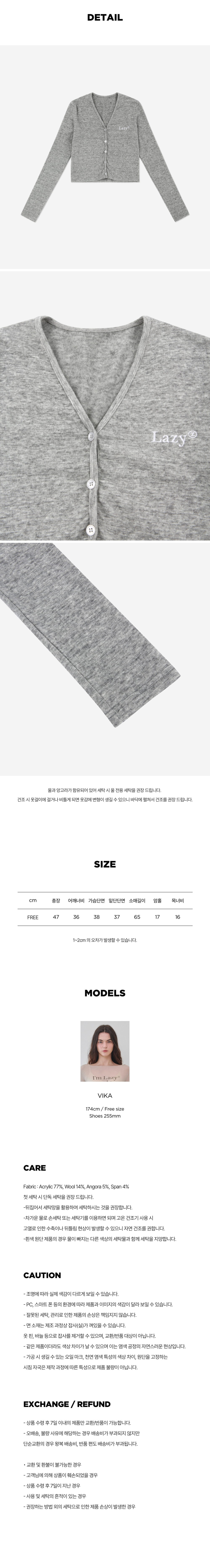 레이지지 코지 레이지 울 앙고라 브이넥 가디건 그레이