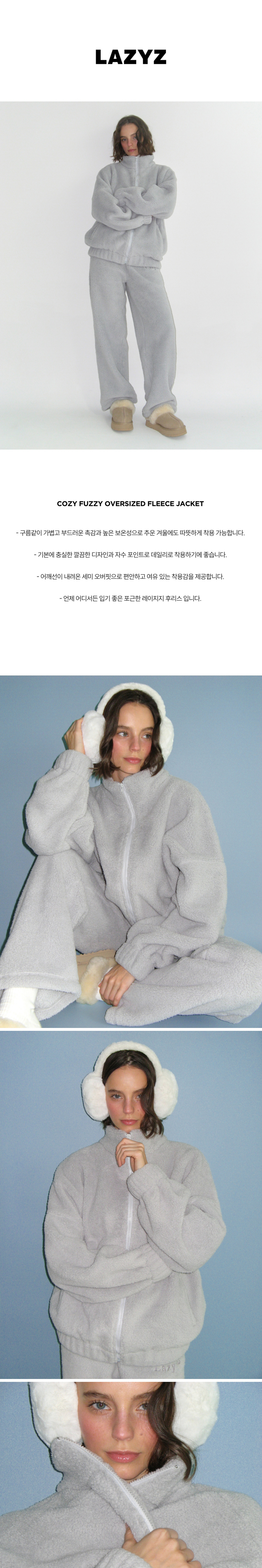 레이지지 코지 퍼지 오버사이즈 플리스 자켓 포그