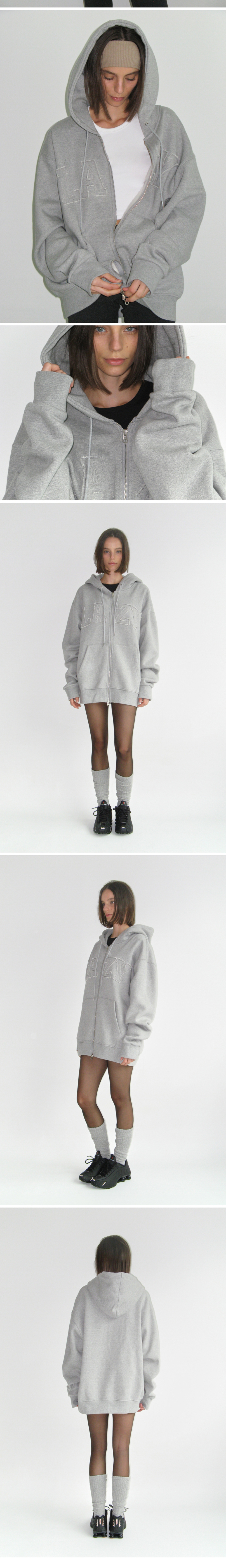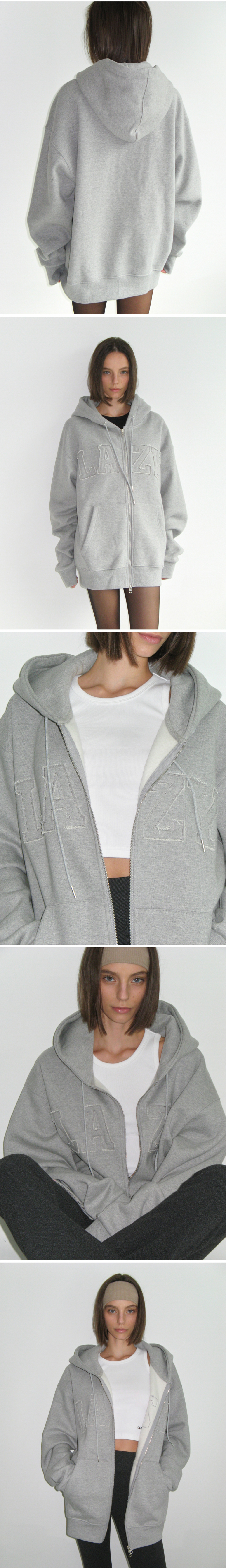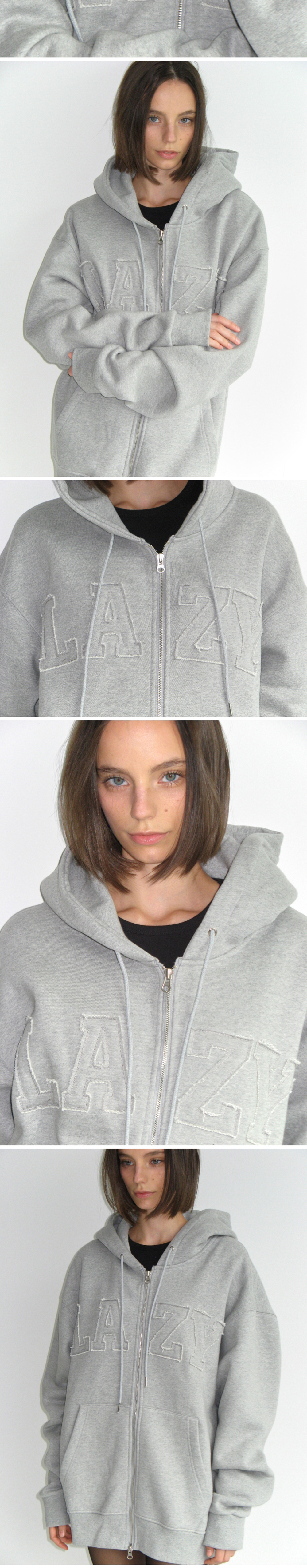 Lazyz Lazy Grunge Patch Over Fit Hood Zip-Up Gray