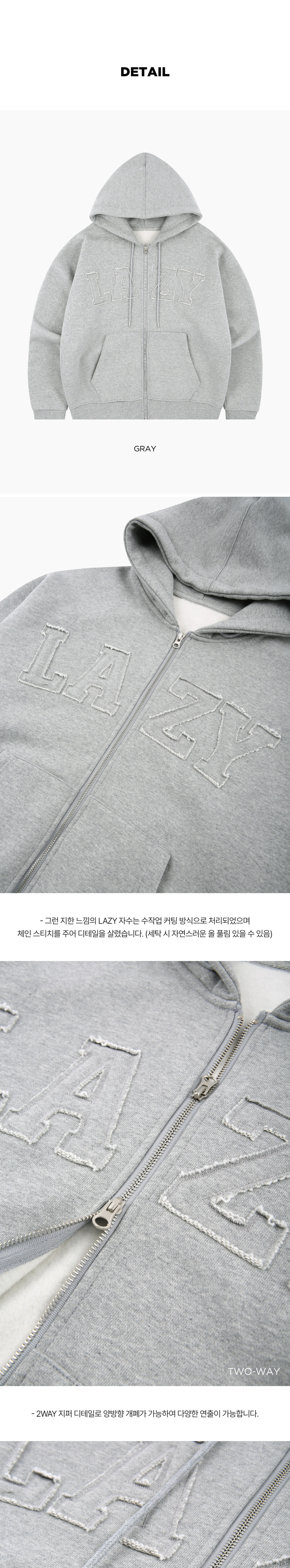 레이지지 레이지 그런지 패치 오버 핏 후드 집업 그레이
