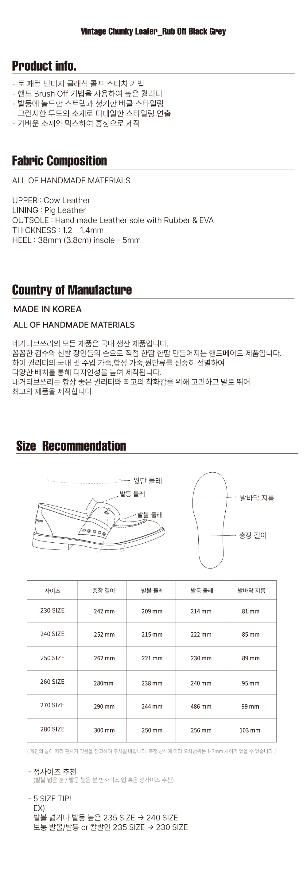 [KREAM 단독]NegativeThree Vintage Chunky Loafer Black Grey