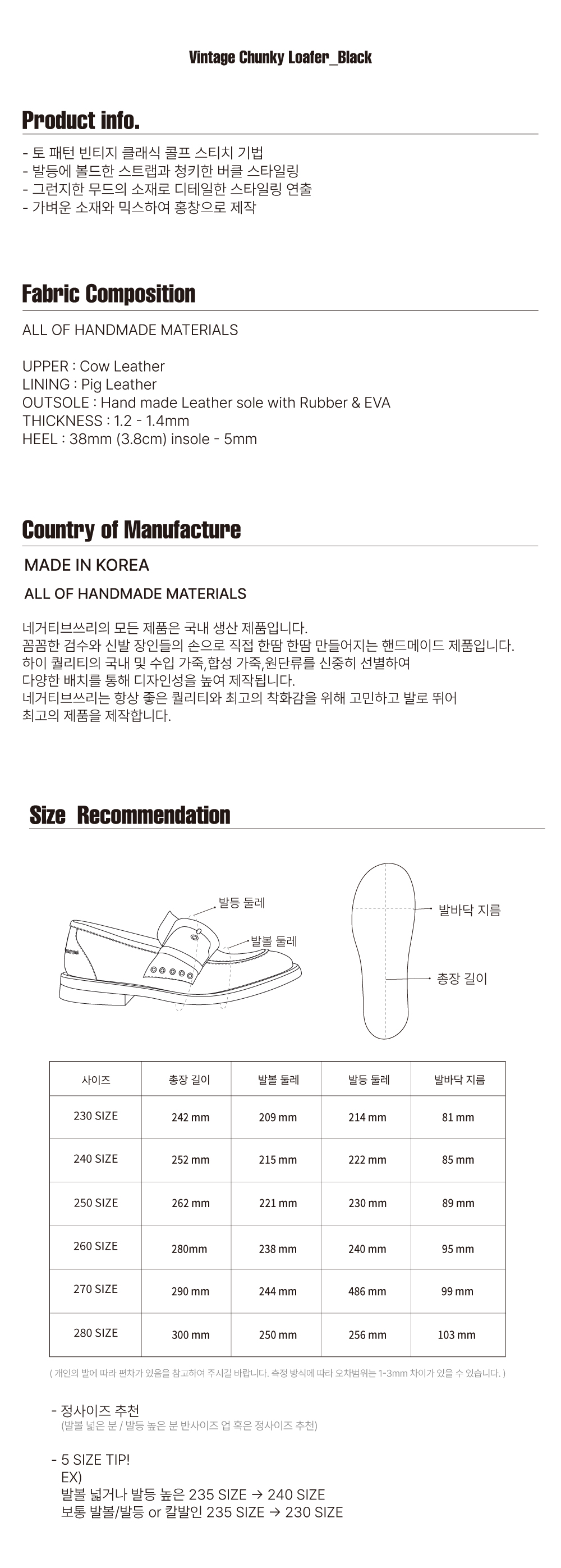 네거티브쓰리 빈티지 청키 로퍼 블랙