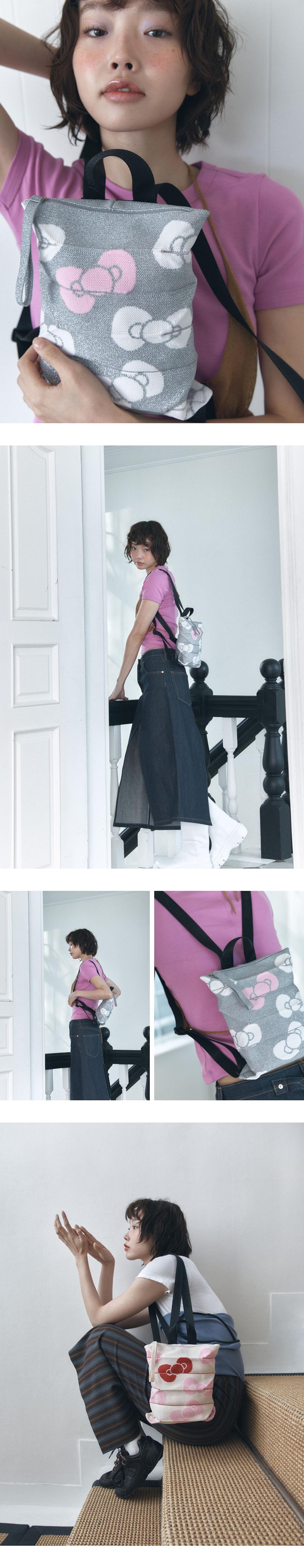 Joseph&Stacey Lucky Pleats Knit Backpack XS Leopard Hello Kitty Platinum