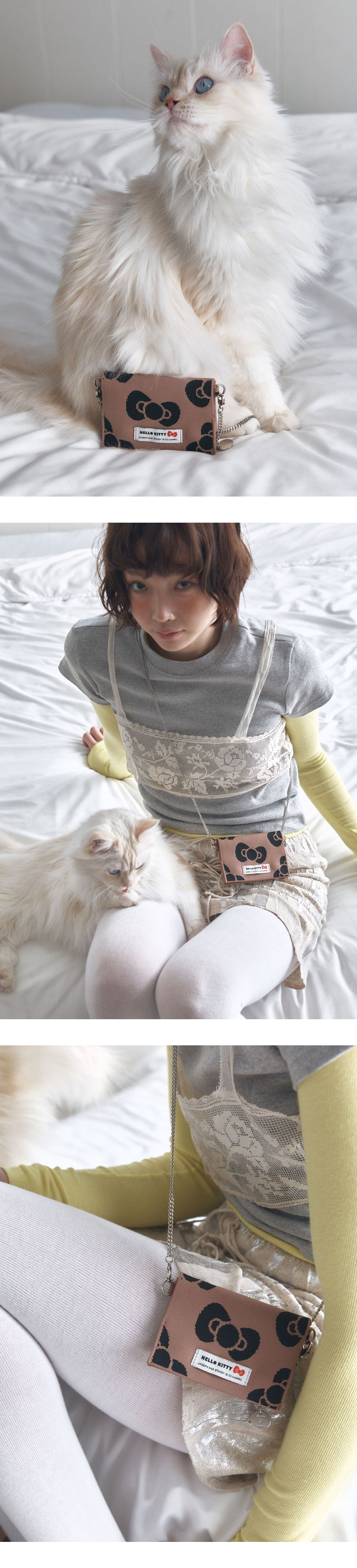 조셉앤스테이시 럭키 니트 카드 월렛 위드 체인 레오파드 헬로키티 탄 브라운