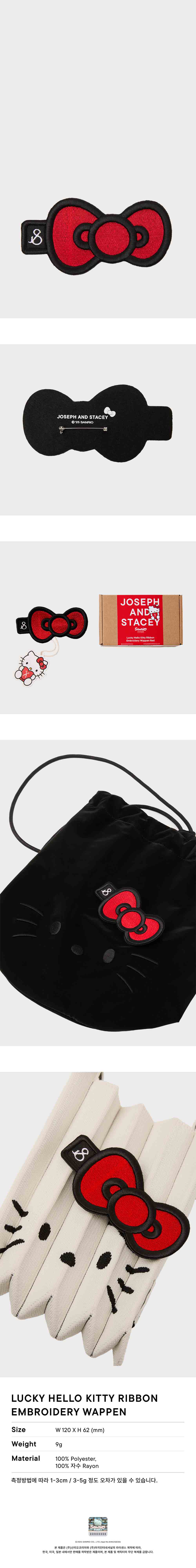 조셉앤스테이시 럭키 헬로키티 리본 자수 와펜 레드