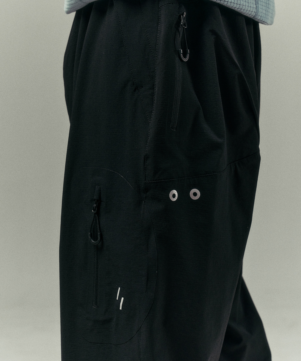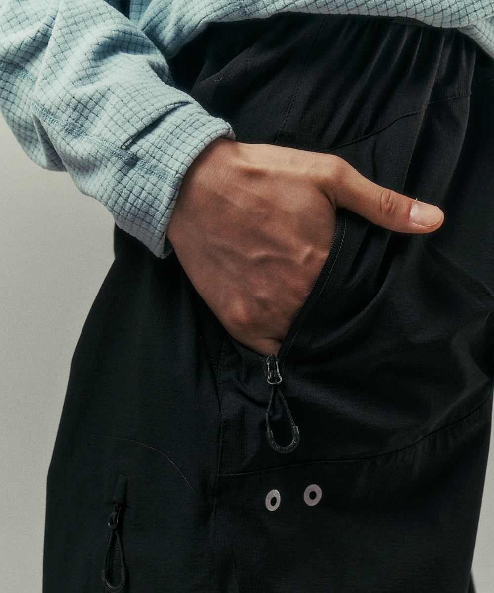 [ INSTRUCTION ] 사방으로 자유롭게 늘어나는 립스탑 스트레치 나일론 원단으로 제작돼 움직임이 편안한 팬츠입니다. 편안한 다리의 움직임을 위한 조각을 앞판과 뒷판 사이에 설계했습니다. 허벅지 후면통 양쪽에는 통기용 타공이 위치합니다. 야간산행에 유용한 빛반사 필름이 제품 곳곳에 위치합니다. 밑단 너비를 조절할 수 있는 스트링이 있어 환경에 맞게 조절이 가능합니다. [ SPECIFICATION ] 고신축성 나일론 원단 허벅지 전면 지퍼포켓 허벅지 후면 통기용 타공 재귀반사(빛반사) 필름(로고 / 타공) 사용자화 조절 기능 (허리 / 밑단)