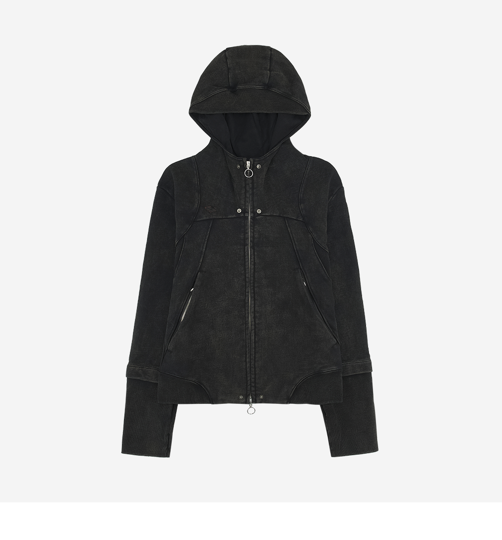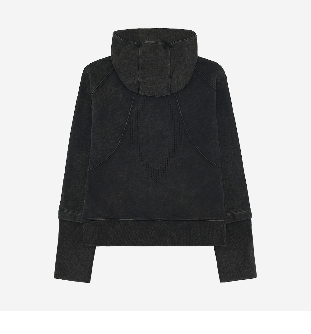 (W) 미스치프 롬버스 펀칭 후드 집업 워시드 블랙