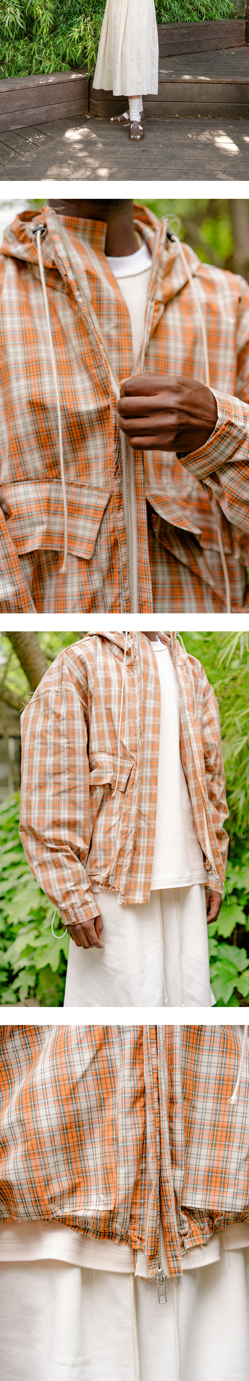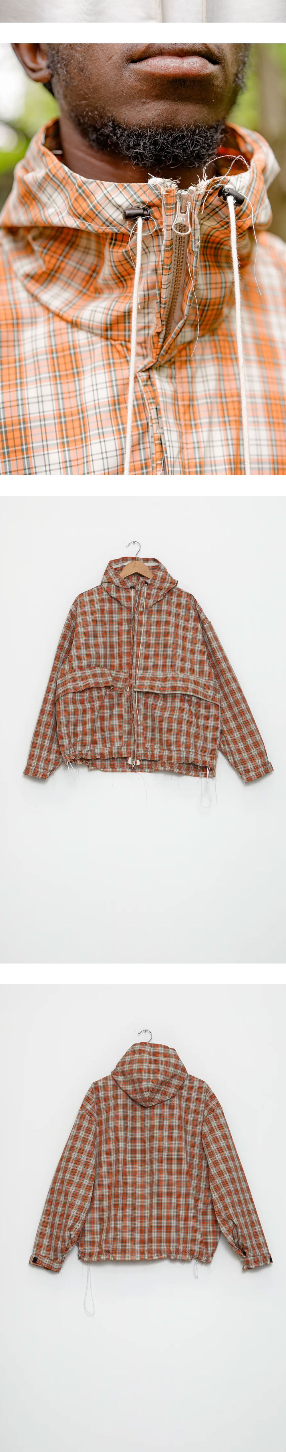 카미엘 포트젠스 크롭 아웃도어 자켓 테크니컬 코튼 오렌지 브라운 체크 - 25SS