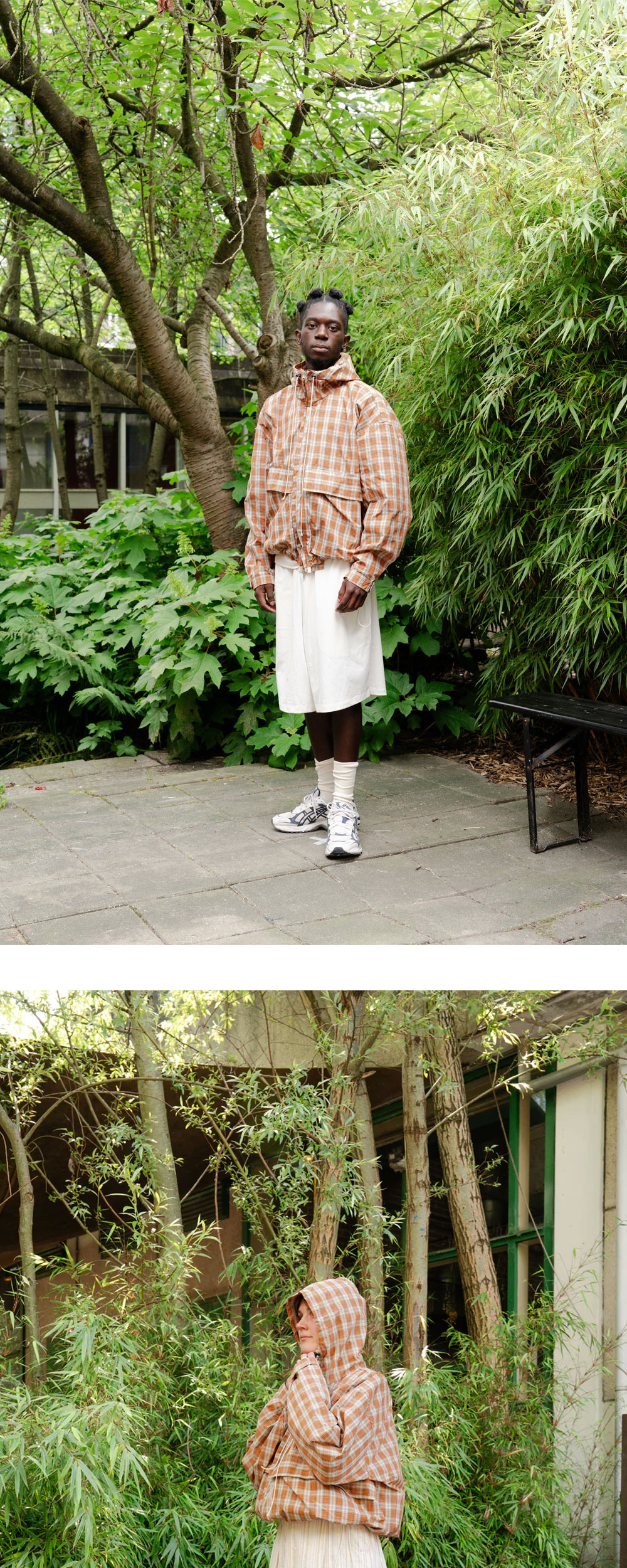 Camiel Fortgens Cropped Outdoor Jacket Technical Cotton Orange Brown Check - 25SS