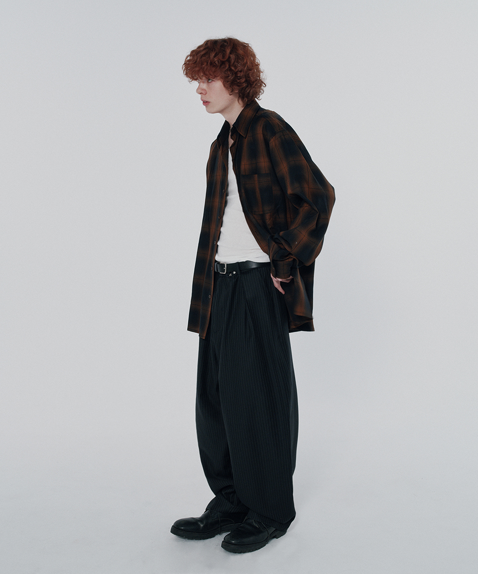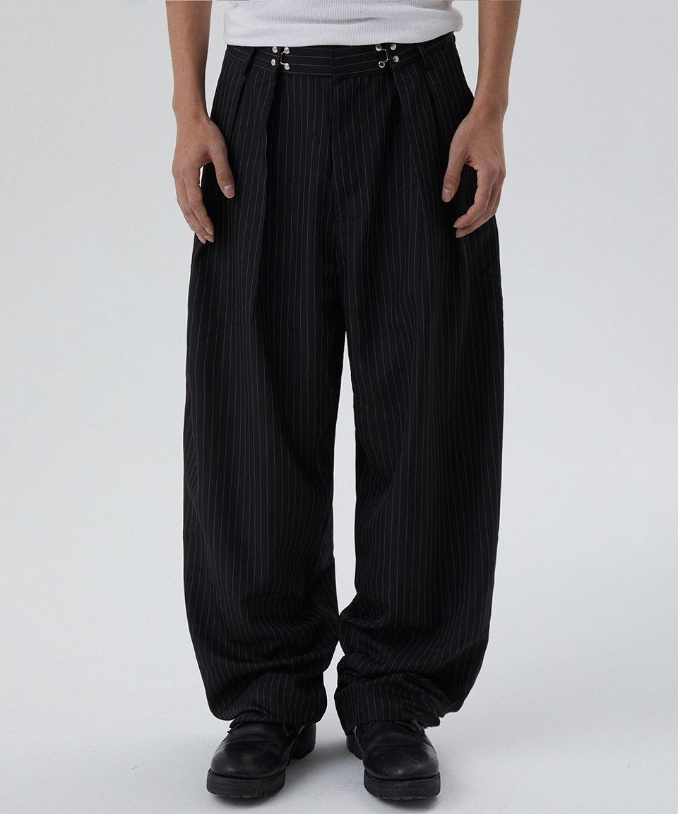 스웨이드 투턱 스트라이프 슬랙스 블랙