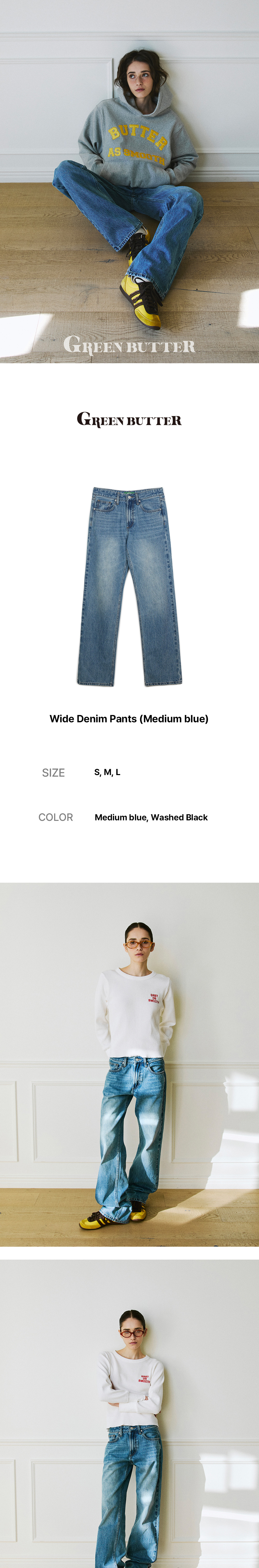 그린버터 와이드 데님 팬츠 미디엄 블루