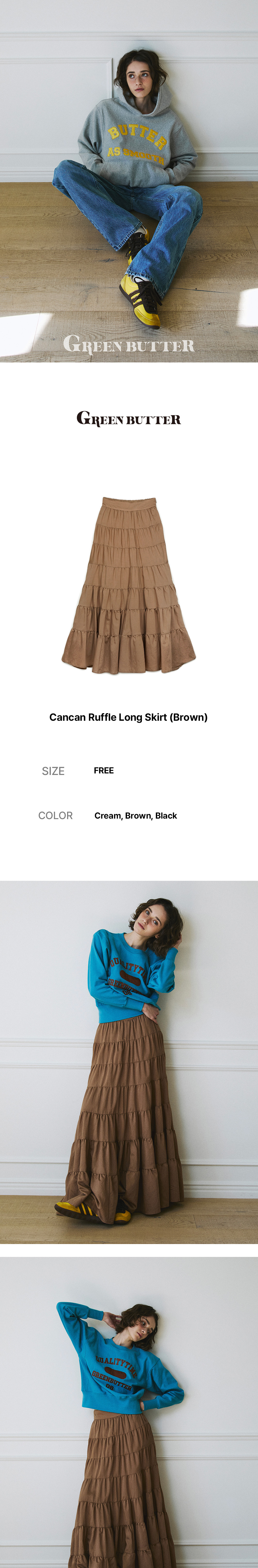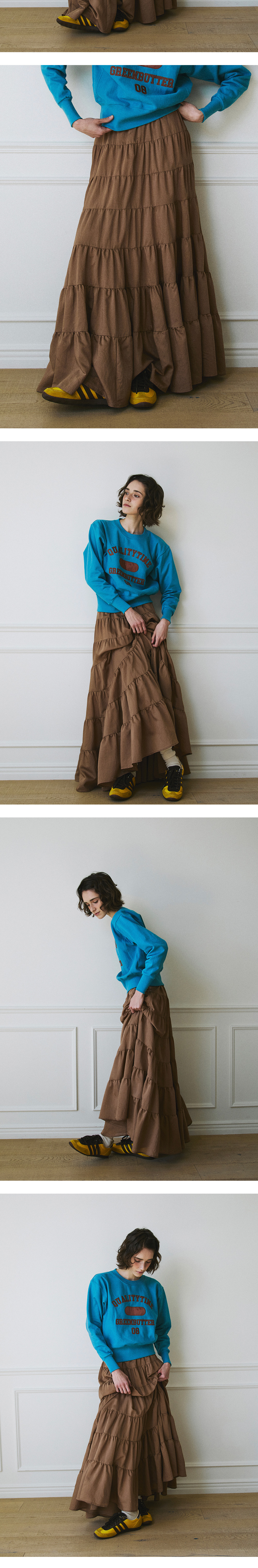 그린버터 캔캔 러플 롱 스커트 브라운