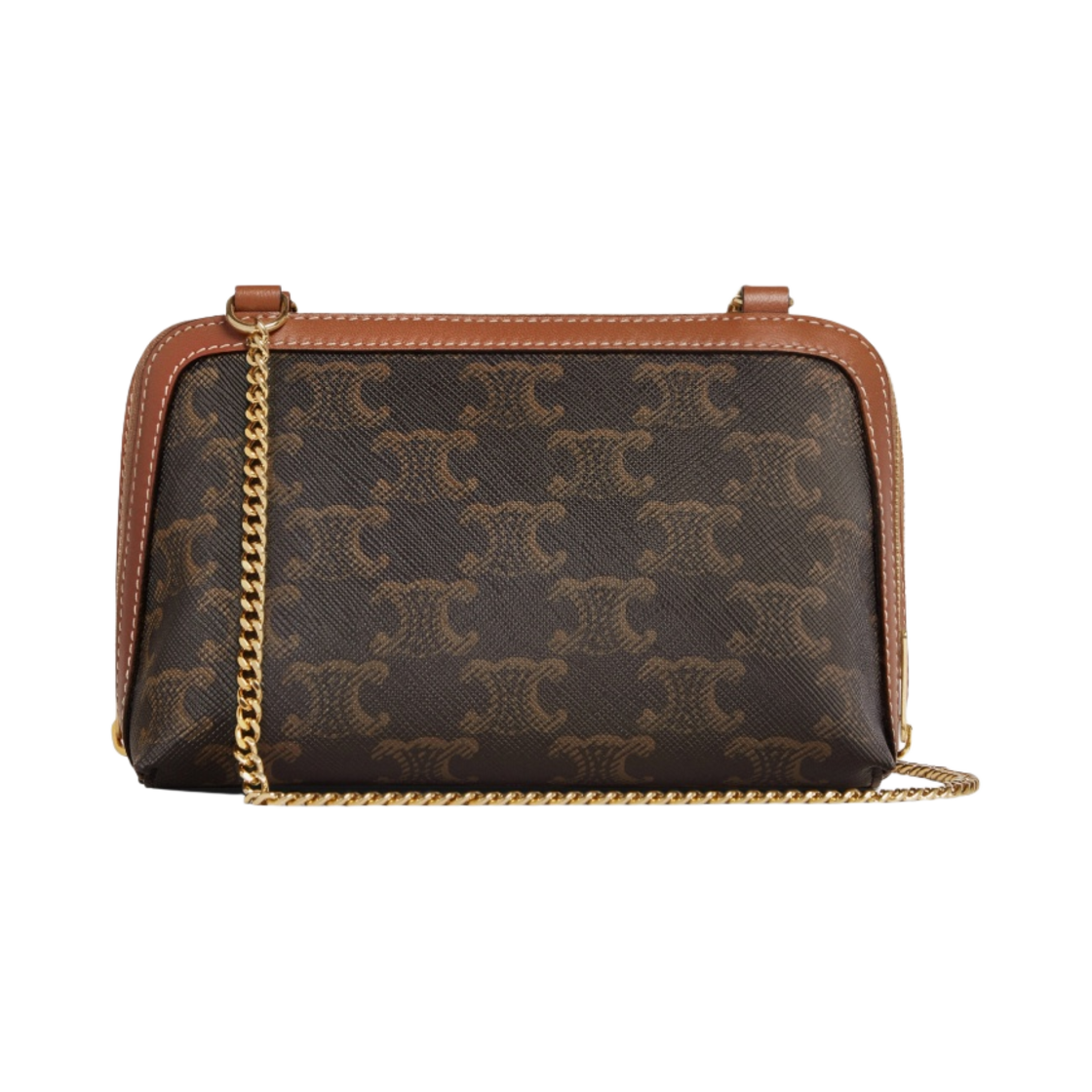 Celine Clutch with Chain in Triomphe Canvas and Lambskin Tan