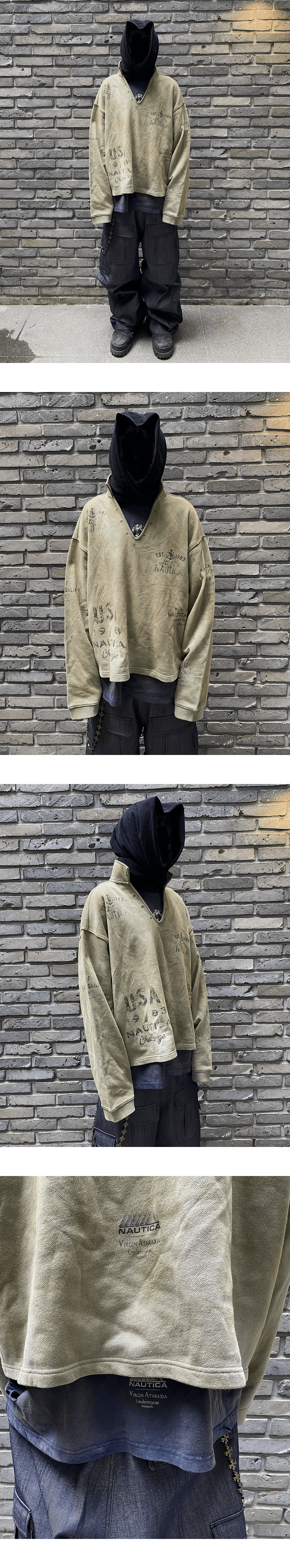 NAUTICA x Undermycar - NTC X UMC DAMAGED OPEN COLLAR PULLOVER - MOSS