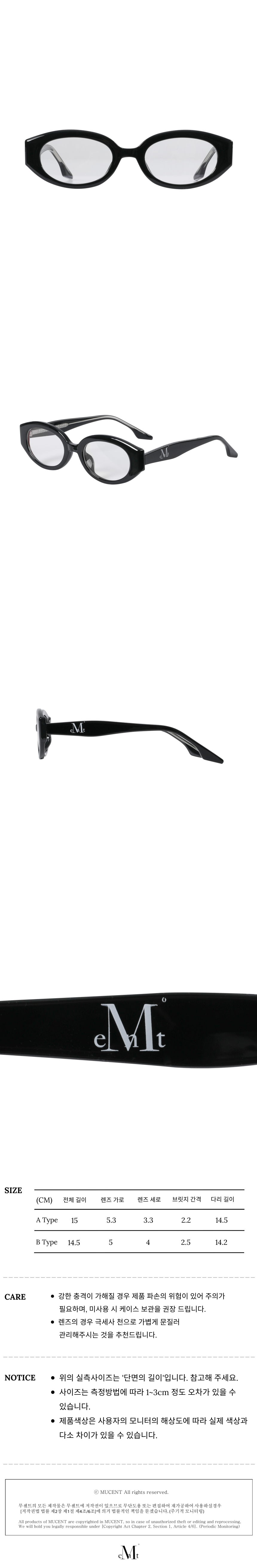 ┃Detail • 무센트가 제안하는 로고 포인트 아이웨어 • 트렌드와 데일리한 요소가 결합된 디자인 • 열에 강하여 변색이 잘 되지 않는 아세테이트 소재 • 안경집 및 안경닦이 증정 • 얼굴형에 관계없이 착용하기 좋은 데일리 아이템 • 다양한 코디 활용도 ┃Material : Acetate 100% ┃Care : 상세페이지 하단 참조 - 무센트는 말기의 행성인 이 지구에서 지속 가능한 옷들을 고민합니다. 우리는 신념을 소비하는 미닝아웃을 지지합니다.