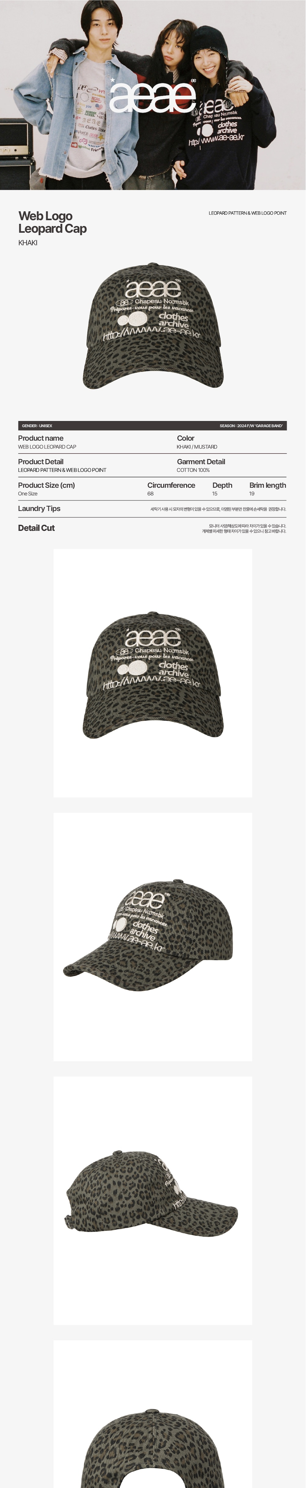 에이이에이이 웹 로고 레오파드 캡 카키