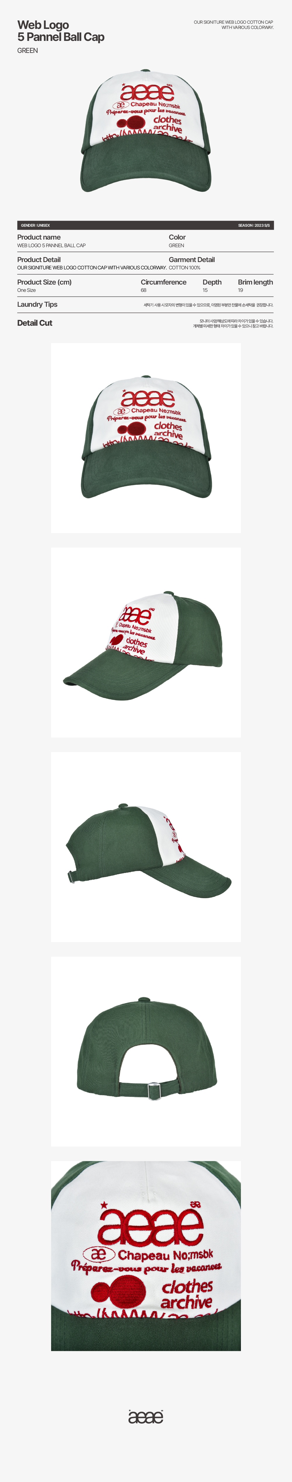 에이이에이이 웹 로고 5 패널 볼캡 그린