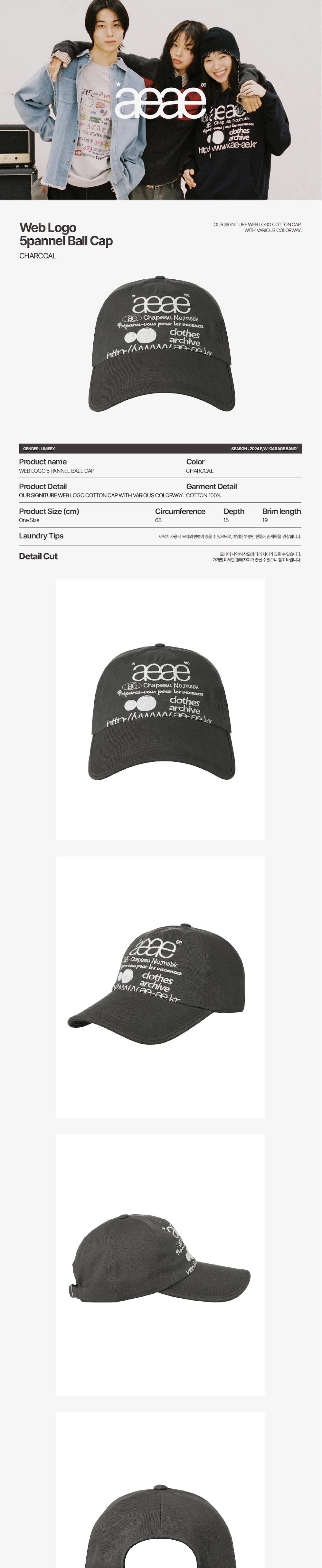 에이이에이이 웹 로고 5 패널 볼캡 차콜