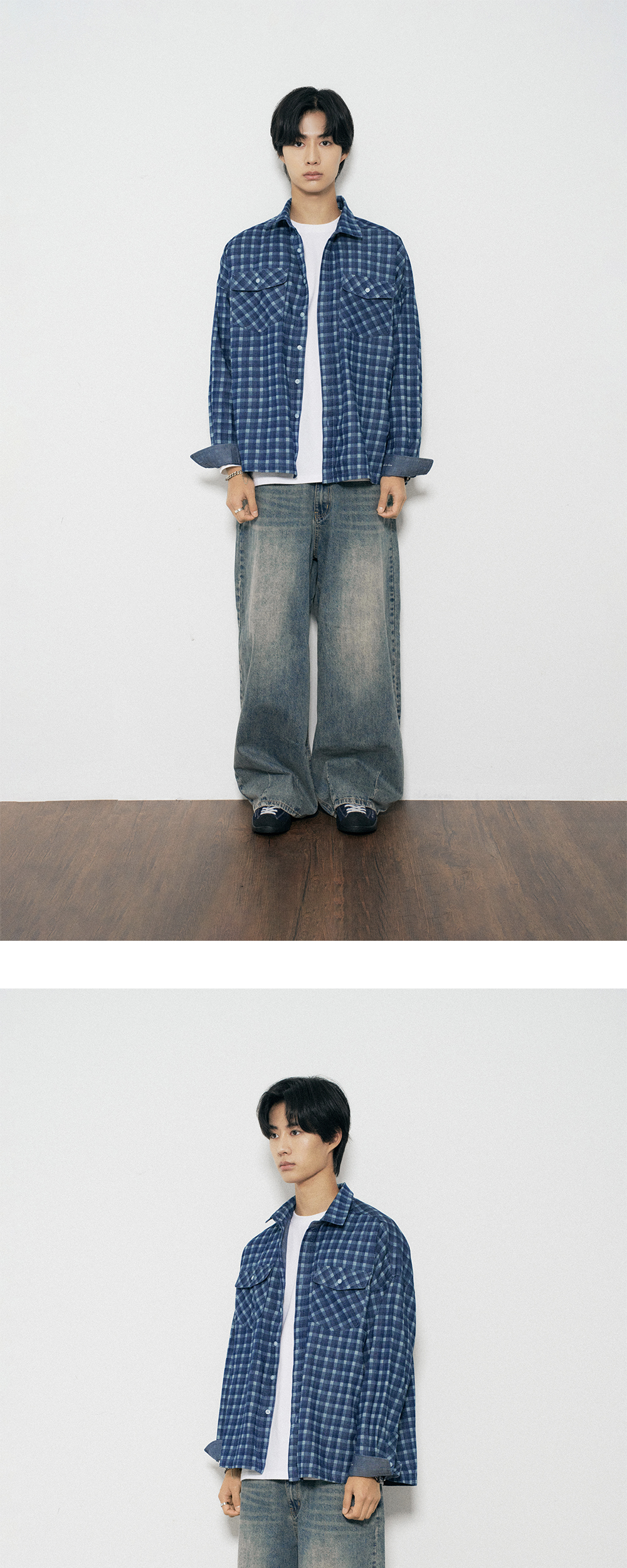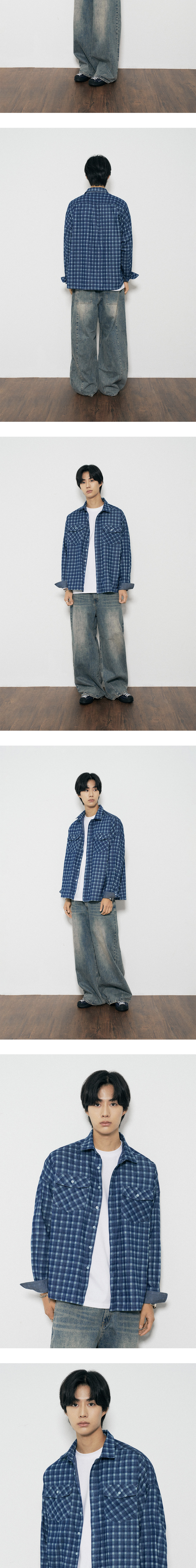 다이아몬드 레이라 워시드 데님 레이저 체크 셔츠 S163