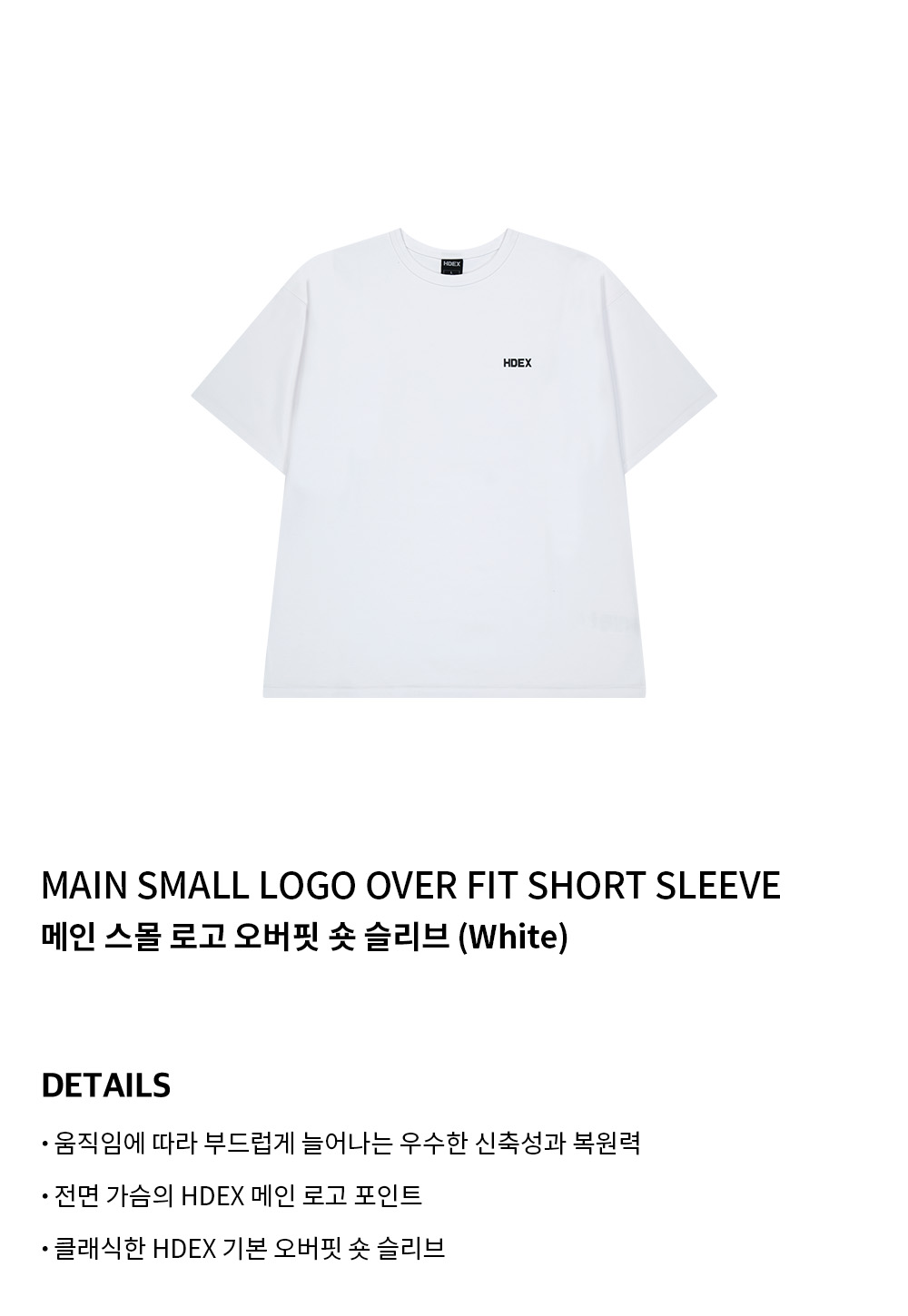 에이치덱스 메인 스몰 로고 오버핏 숏 슬리브 화이트