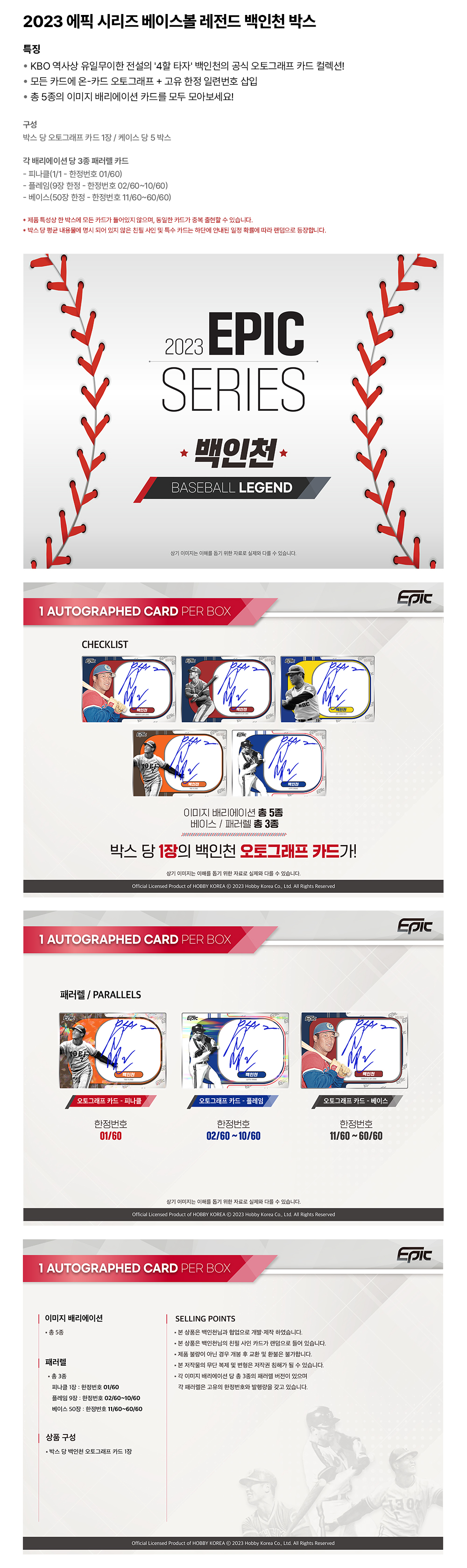 2023 Epic Series Baseball Legend Baek Incheon Box