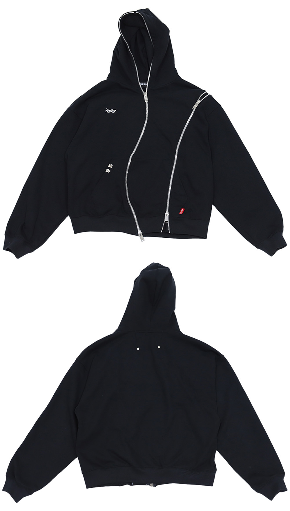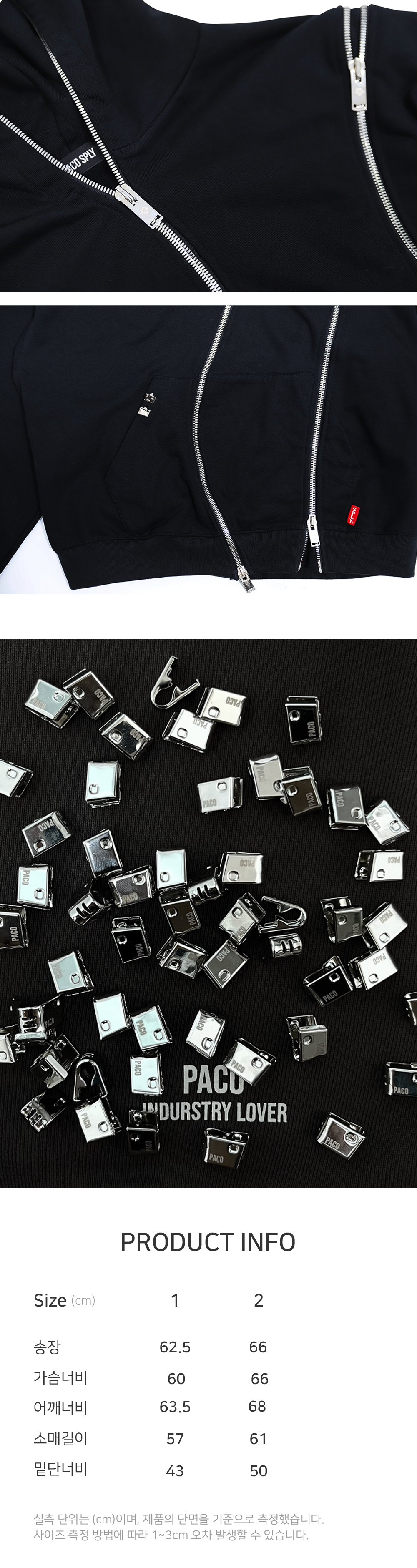-웨이브 지퍼라인 -더블 헤드 파코헤드지퍼 -PACOSPLY 라이터캡 금속장식 -필드 로고 자수 -크롭 오버사이즈 핏 -메탈 니켈 리벳